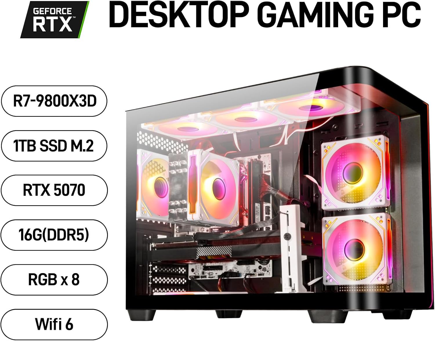 WIWB Gaming Desktop PC, Ryzen 7 9800X3D, RTX 5070 12GB, 16GB DDR5 RAM, 1TB NVMe SSD, WiFi 6, High-Performance Gaming Computer for AAA Games, Streaming, Video Editing