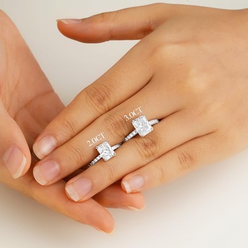 MOOSEA Radiant Cut Moissanite Engagement Rings for Women, 3ct Lab Created Moissanite Ring 14K White Gold Plated Wedding Promise Rings for Her Anniversary Jewelry Gift