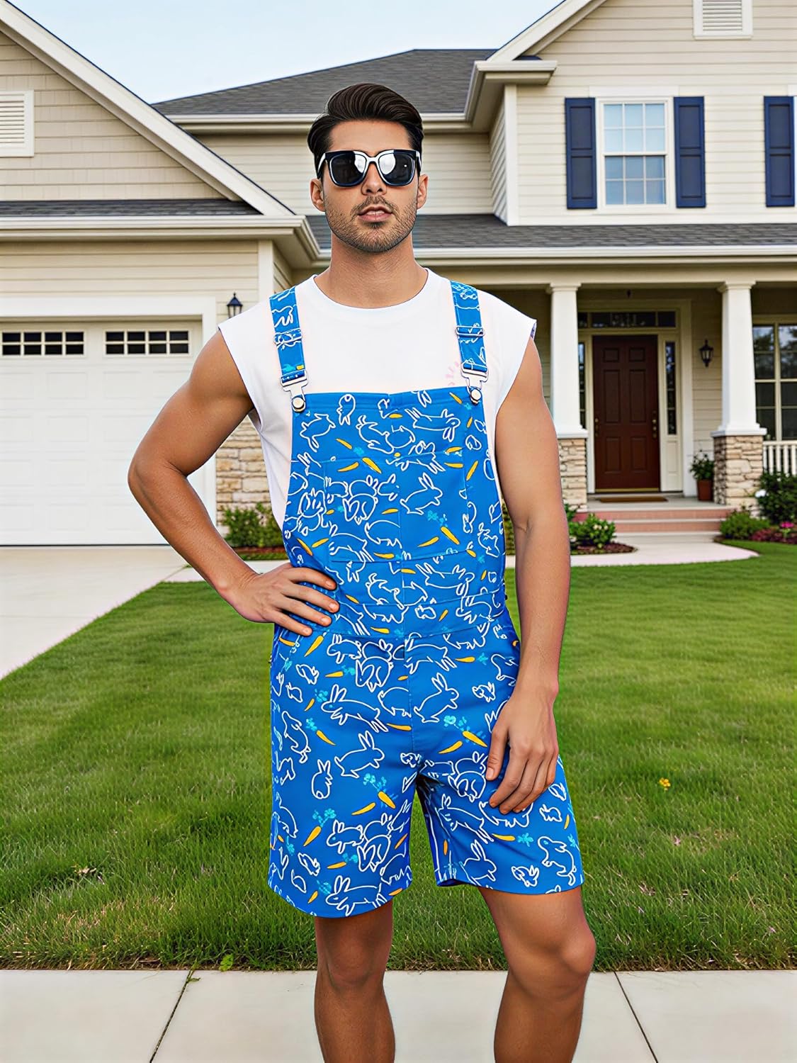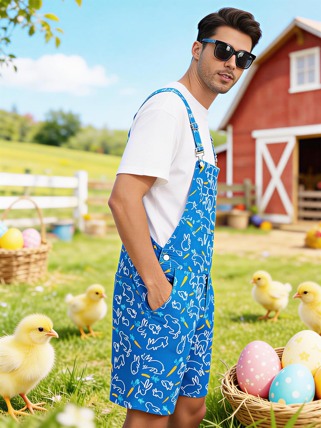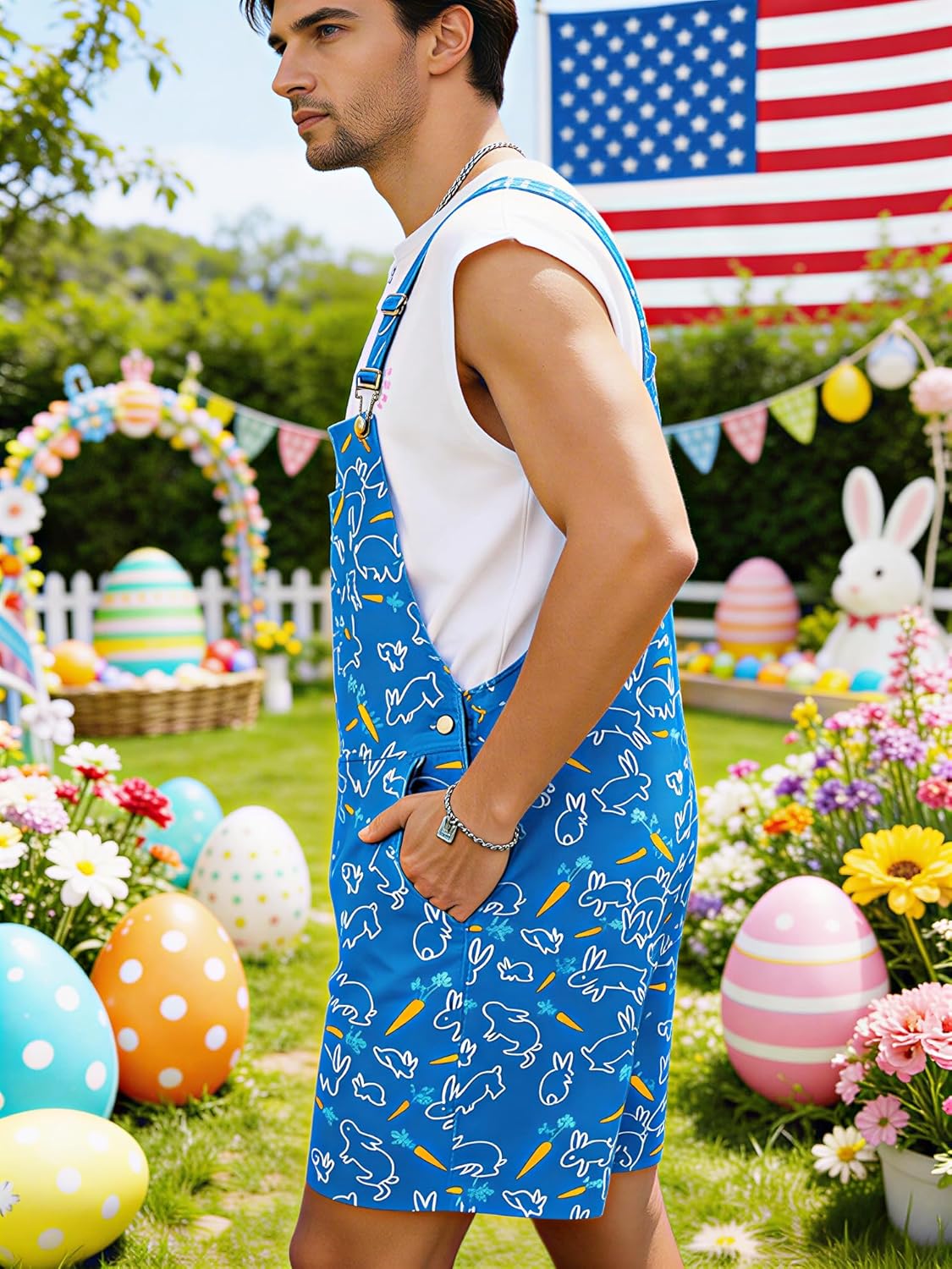 Easter Overall Shorts for Men Occasions: Perfect for themed parties, music festivals, holidays, backyard BBQs, or as a bold casual wear piece. Wear it with a t-shirt underneath or on its own for a daring look that's sure to get compliments.