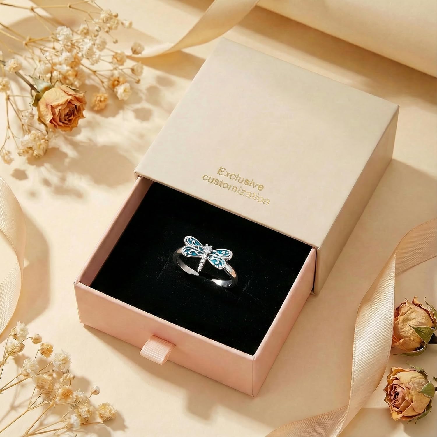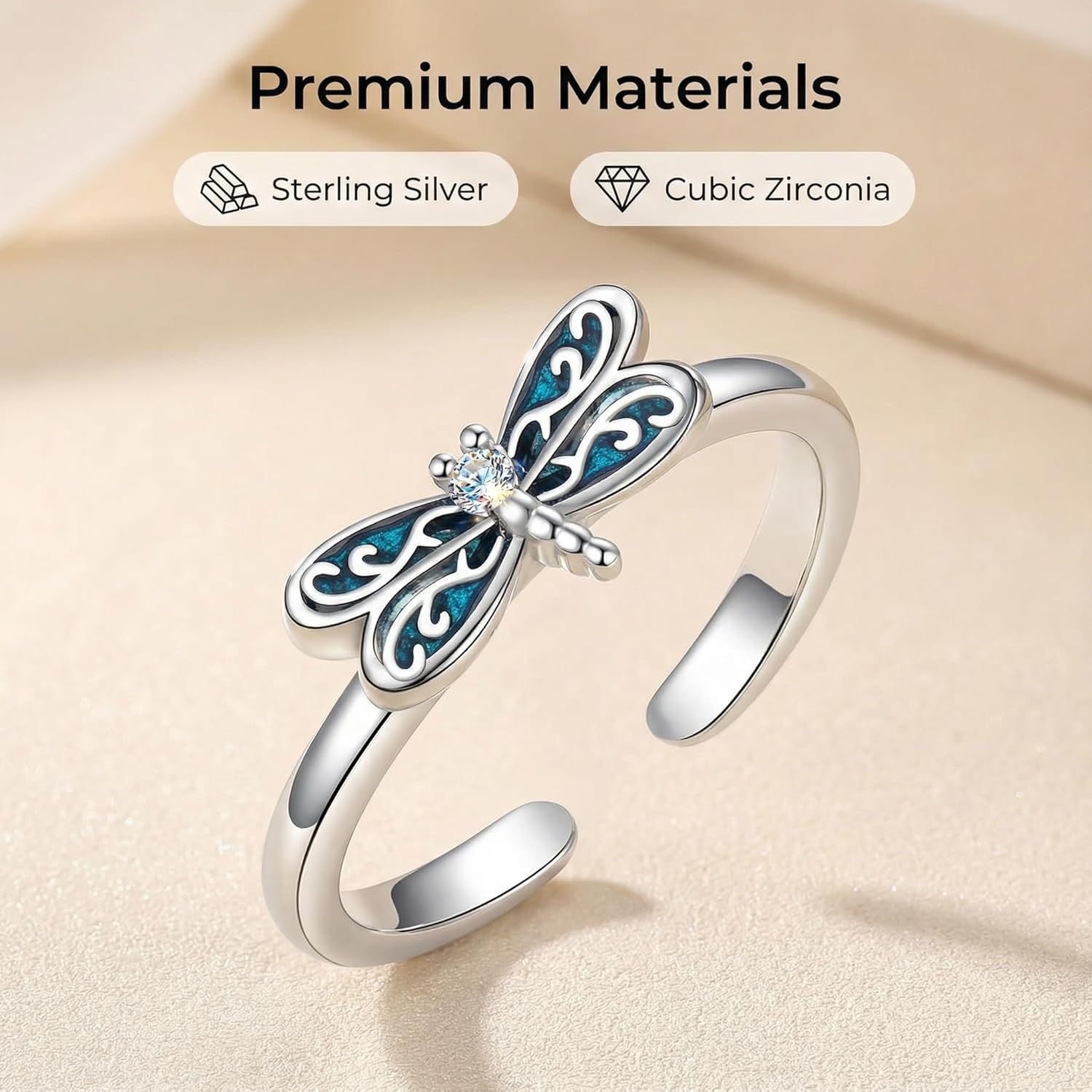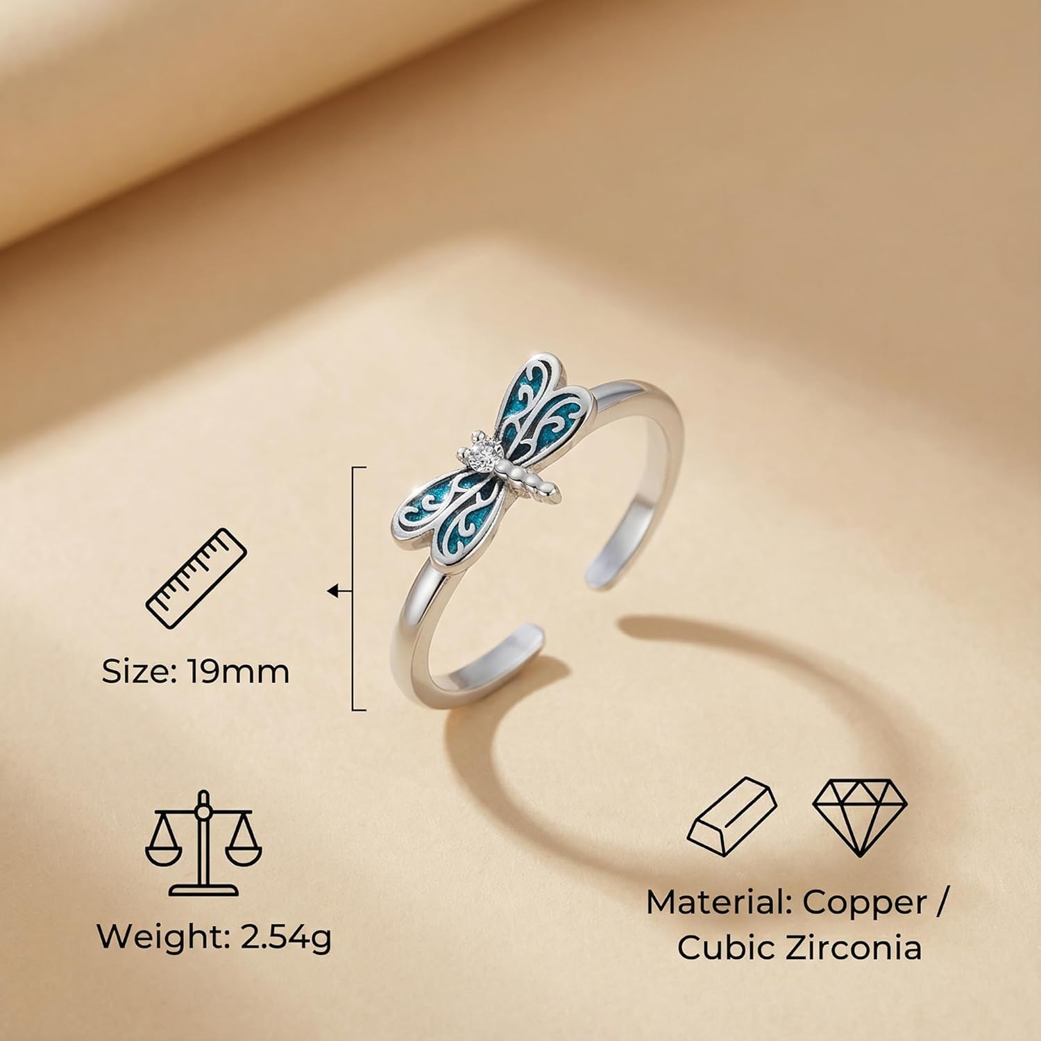 DIMENSIONS: Ring features a 19mm (0.75 inch) width dragonfly design that makes a statement while remaining delicate and feminine, perfect as a gift or personal accessory