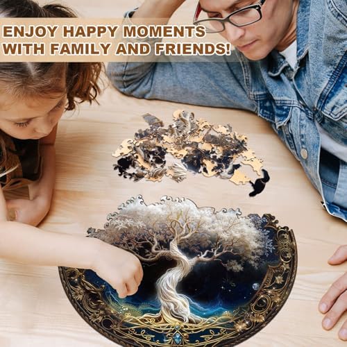 KAAYEE Wooden Puzzles for Adults, Ivory Tree (M-11.4 * 11.4 in-200pcs) Wooden Jigsaw Puzzle, Natural Wood Puzzles for 14+, Leisure Game, Home Wall Decor for Puzzle Lovers, Friends