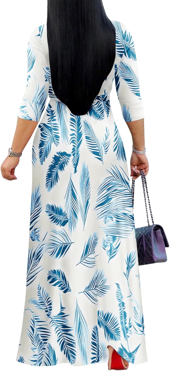 PerZeal Women\u2019s Boho Plus Size V-Neck 3\/4 Sleeve Maxi Dress Colorful Floral Print, Casual Summer Long Dress with Belt