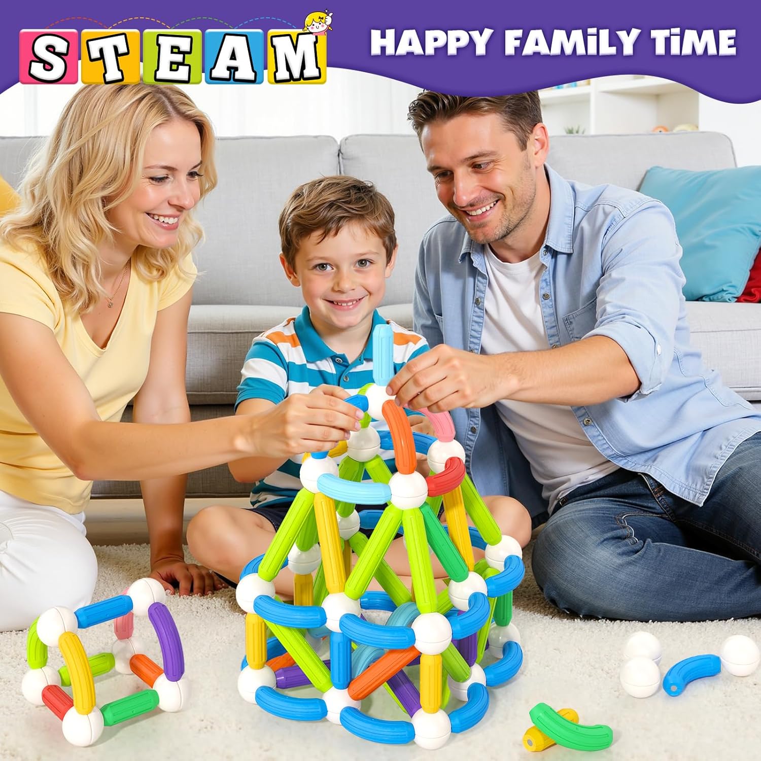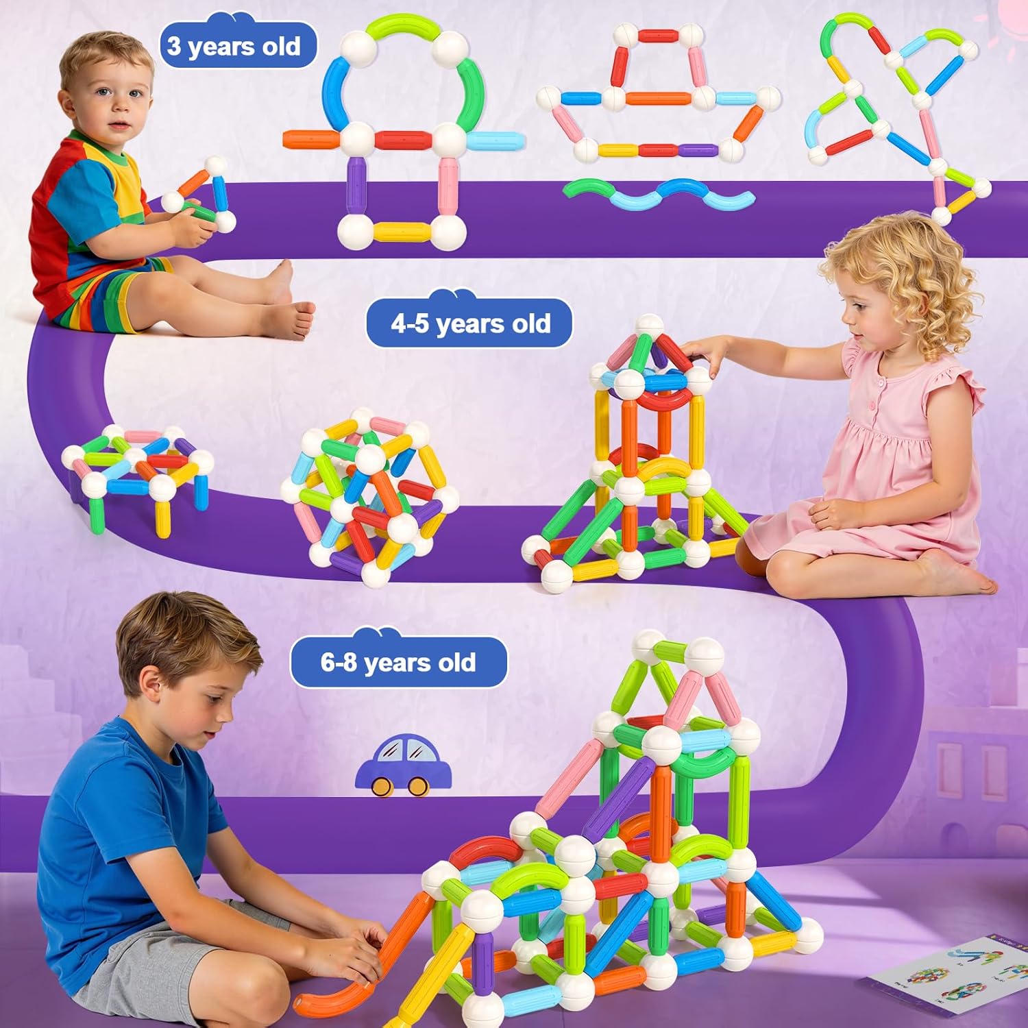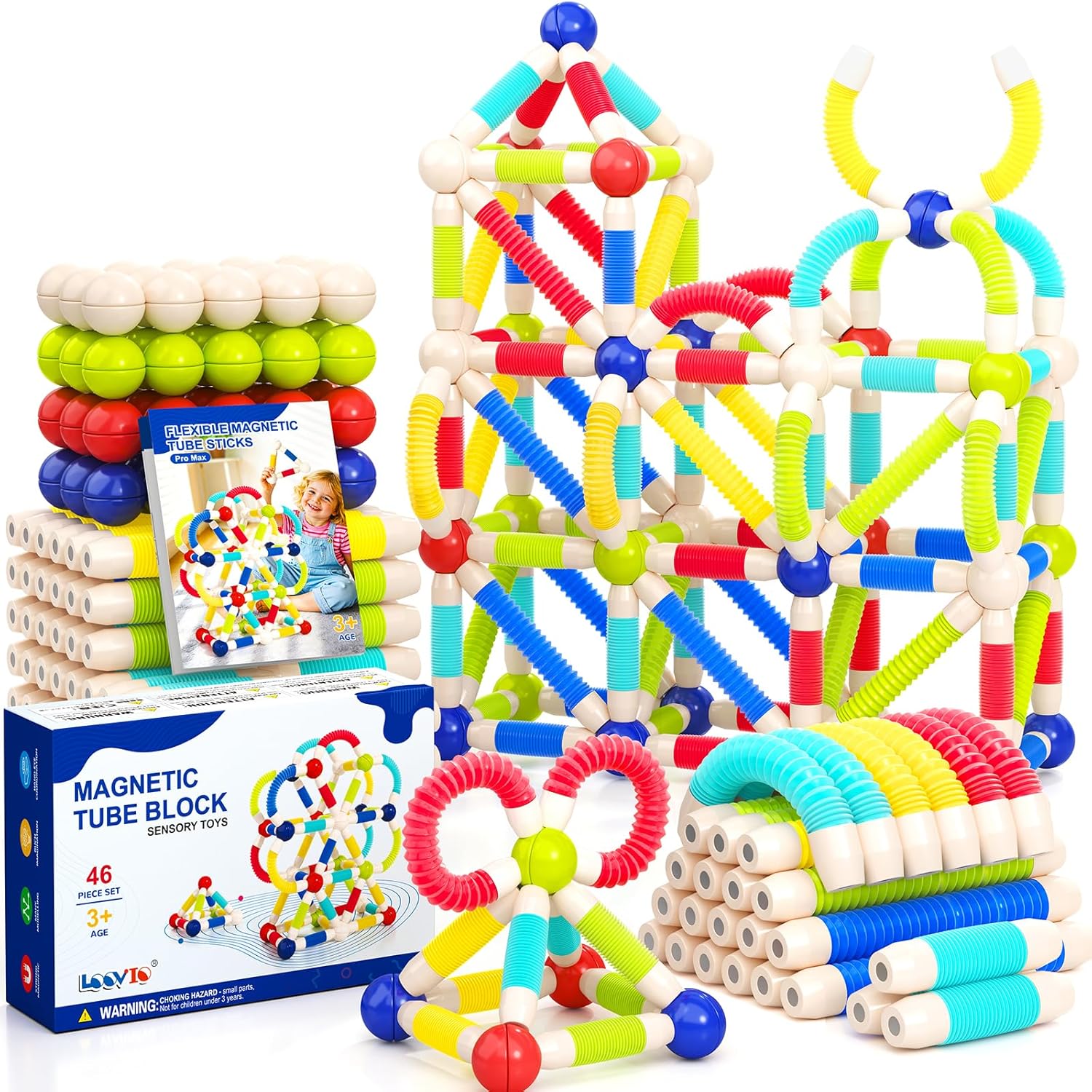 Loovio Magnet Toys for 3 Year Old Boys & Girls,80pcs Montessori Toys for Toddlers Kids, Magnetic Blocks Building Ideal Toys Gift- Starter Set (80pcs Building Blocks)