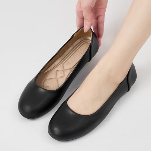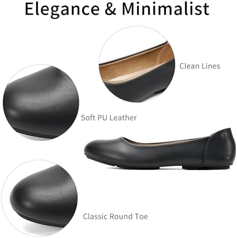 Aomigoct Womens Dress Flats Shoes: Classic Round Toe & PU Leather for Office - No Break-in Heel Pillow & Cushioned Insoles for All-Day Comfort in Business Meetings - Professional Women