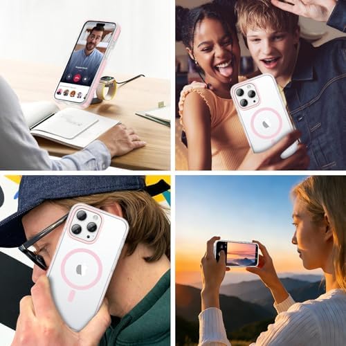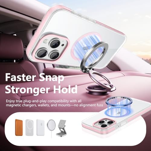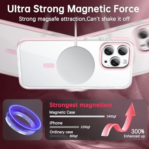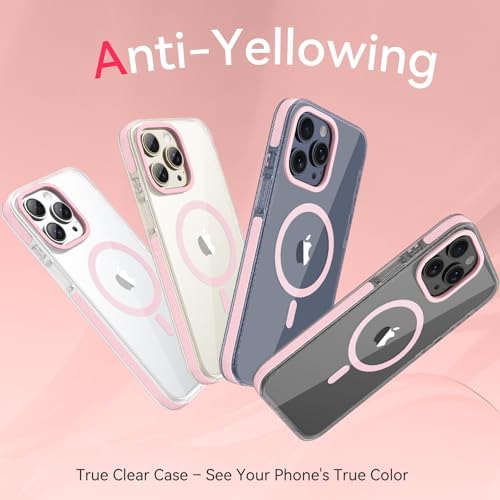 VENINGO for iPhone 15 Pro Max Case Magnetic, Built-in TPU Cushion, Cute Transparent Anti-Yellowing Compatible with Magsafe, Military Drop Proof 14FT, Slim Protective Phone Case, Clear/Pink
