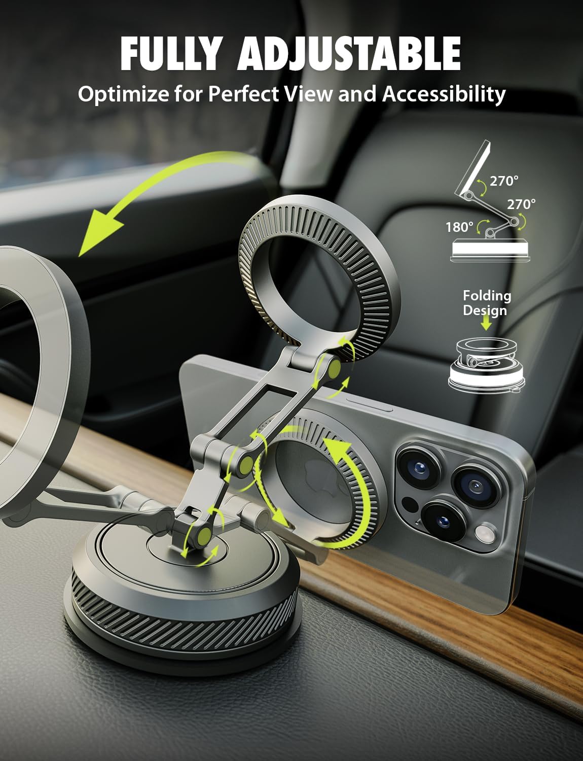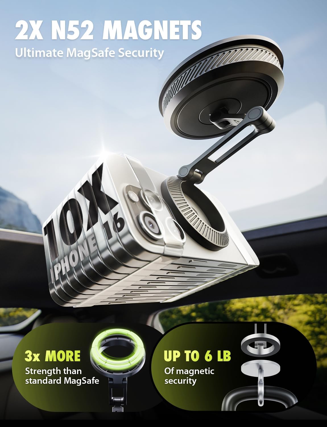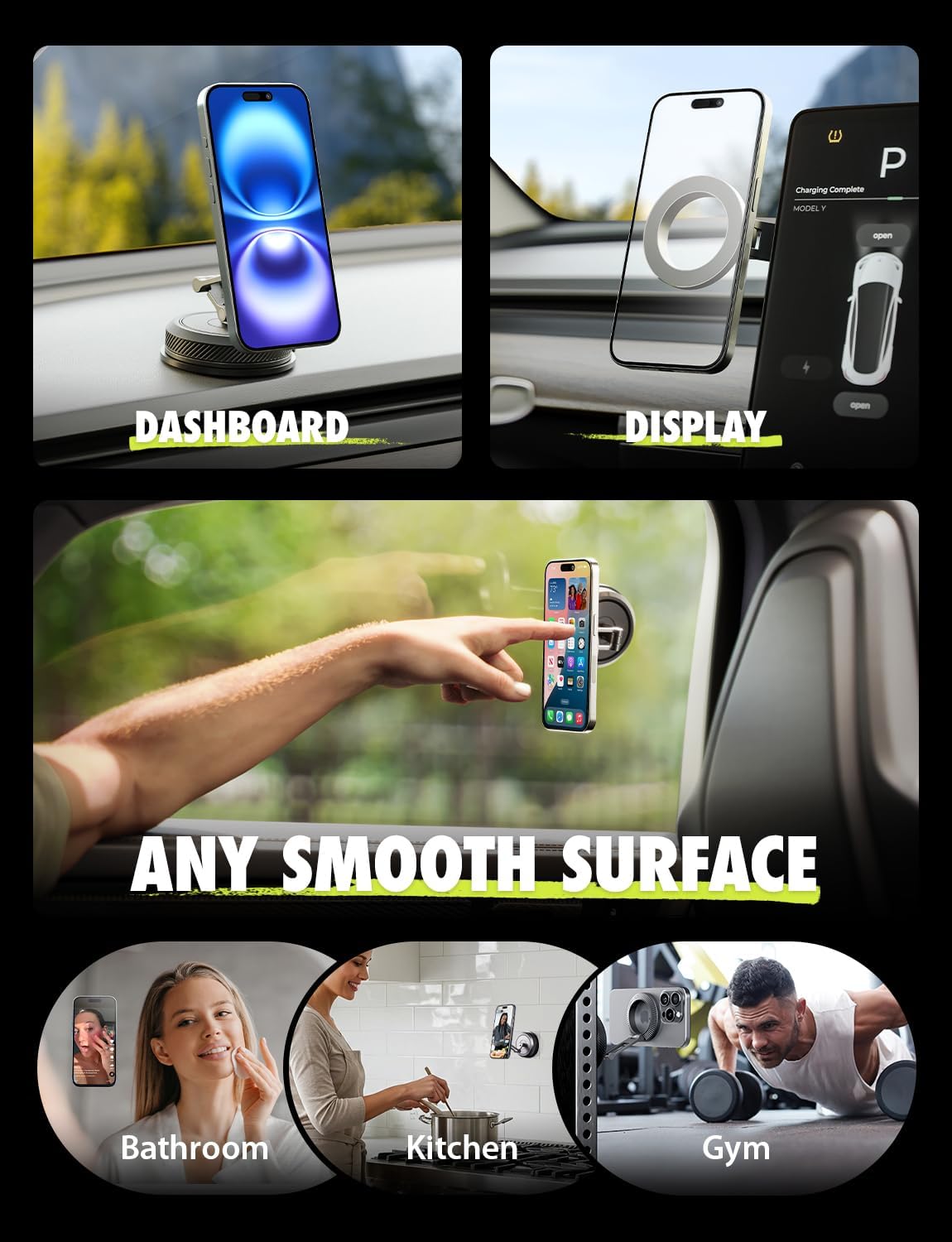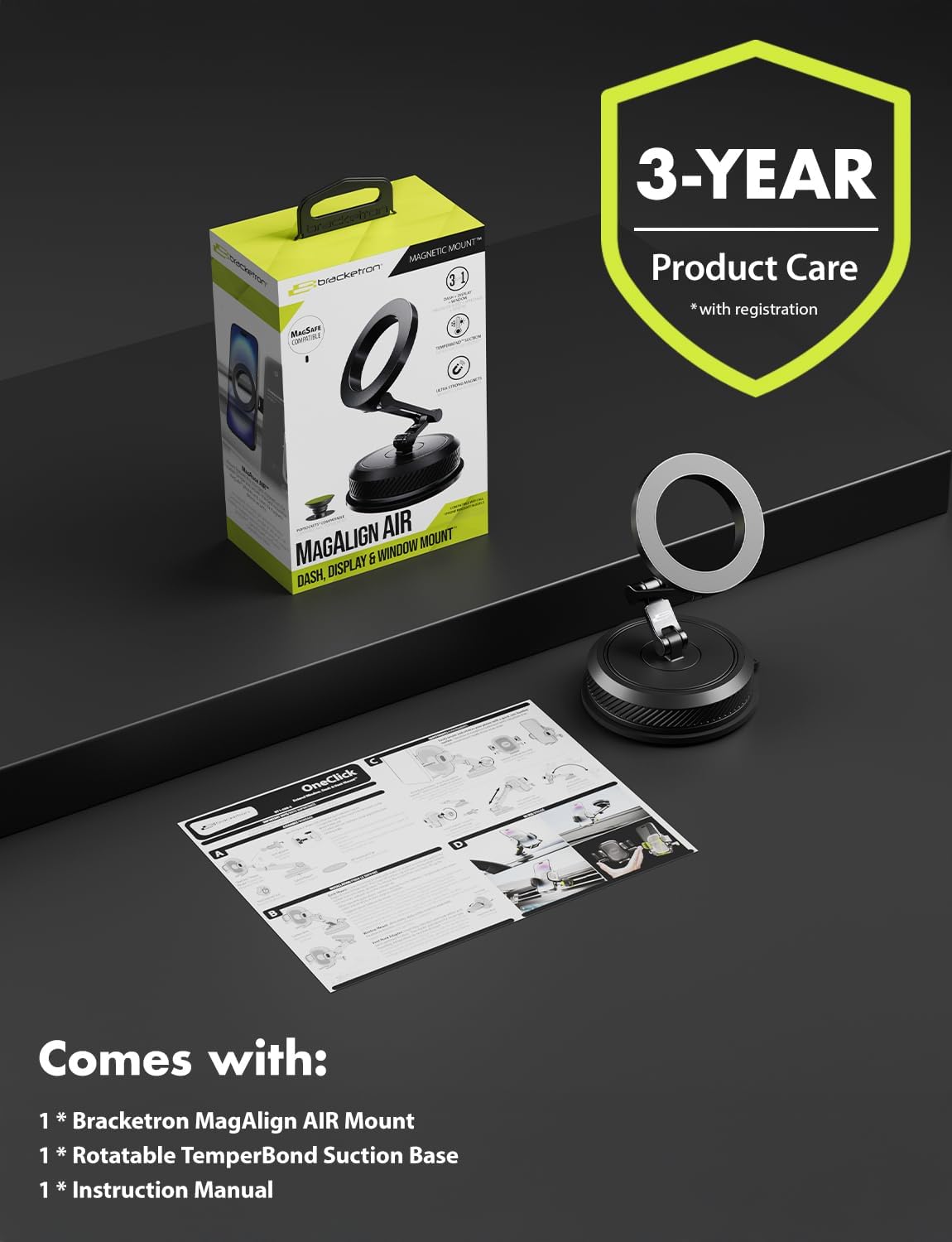 Bracketron MagAlign AIR Magnetic Suction Cup Car Phone Mount \u2013 3-in-1 Dash, Window & Display Mount with Ultra Strong Magnets, MagSafe Phone Holders for Your Car for iPhone 17 16 15 14 13 12