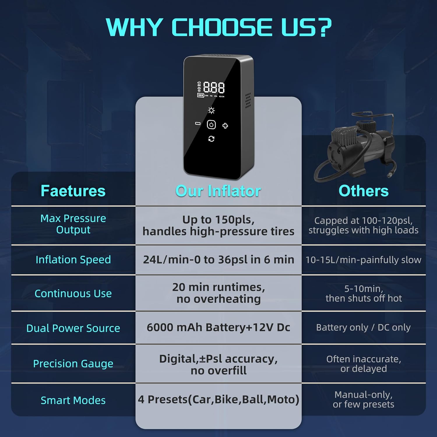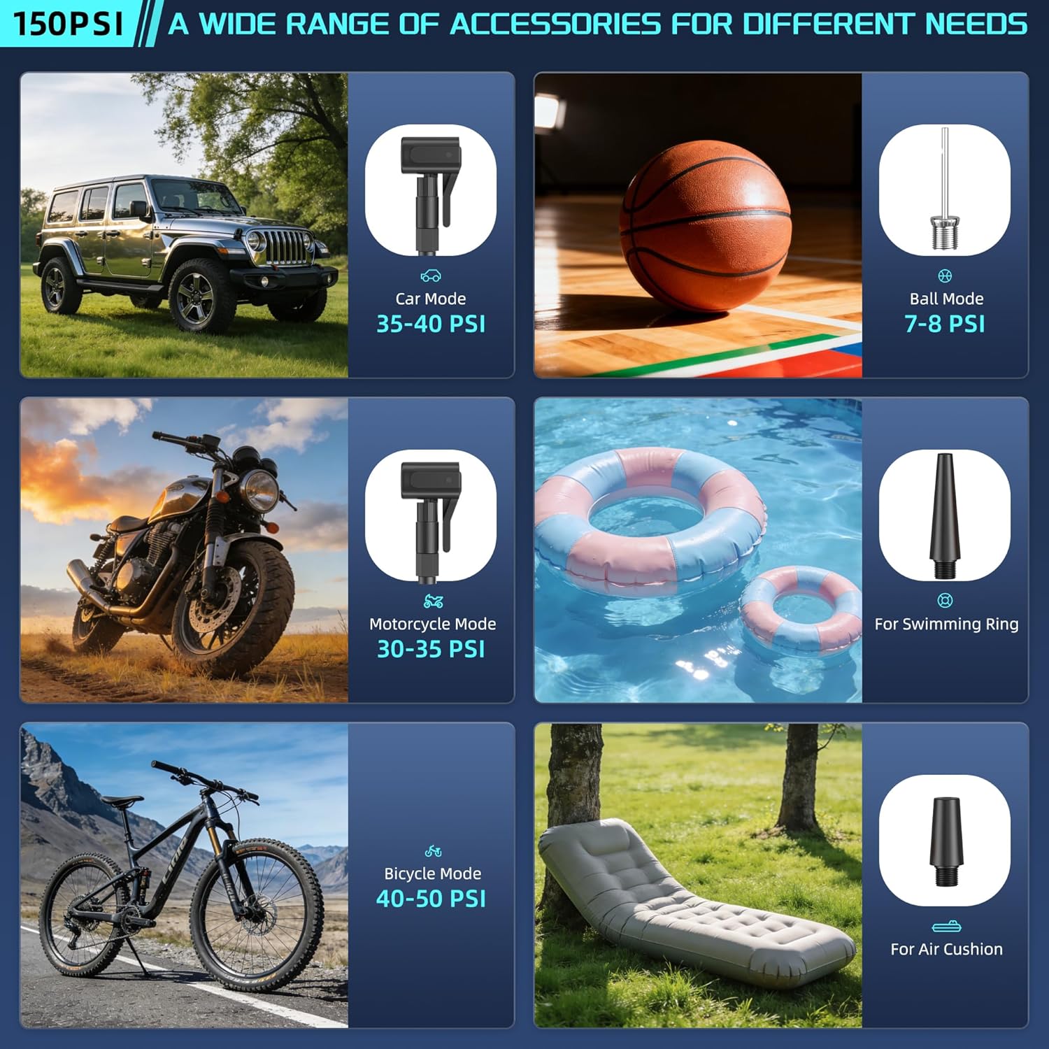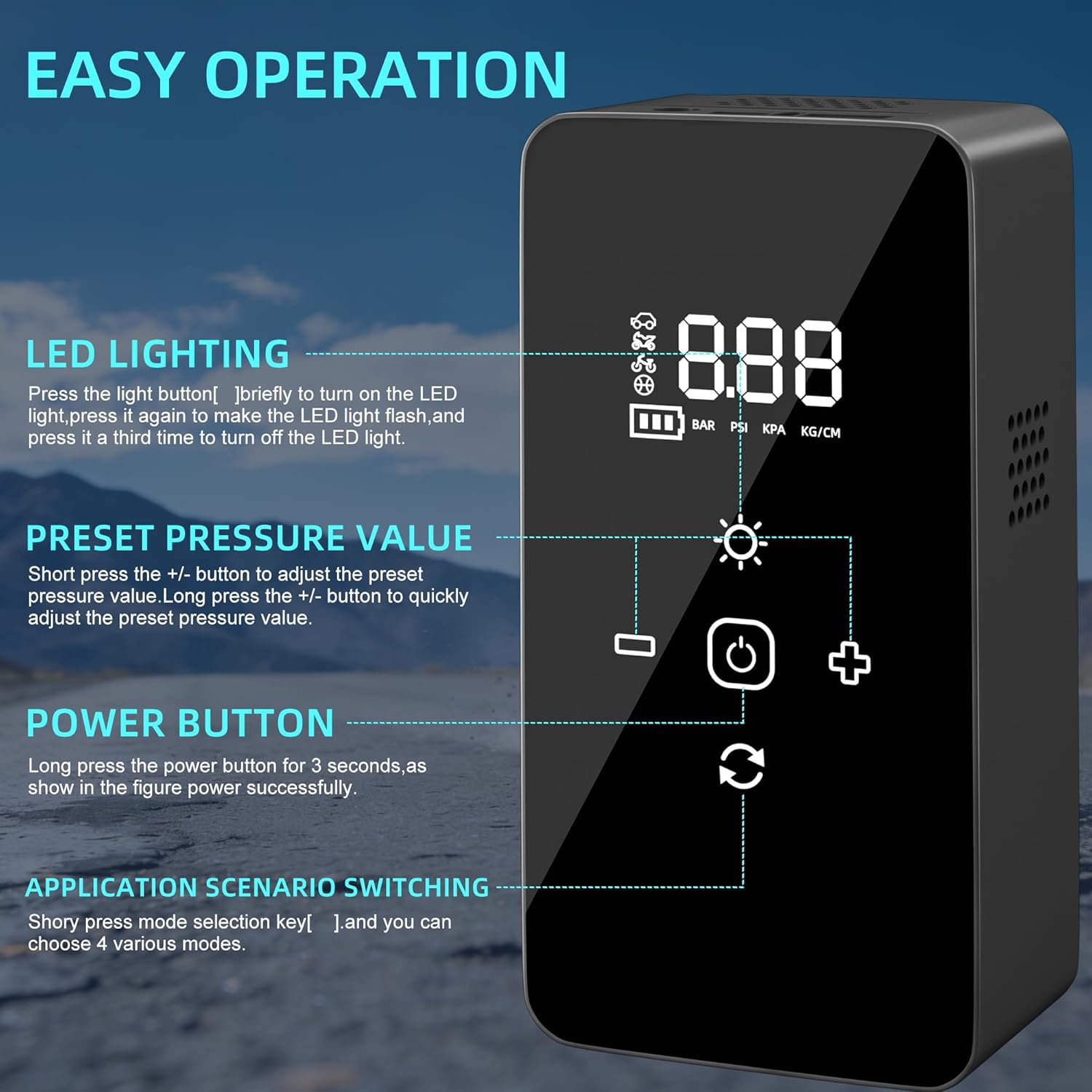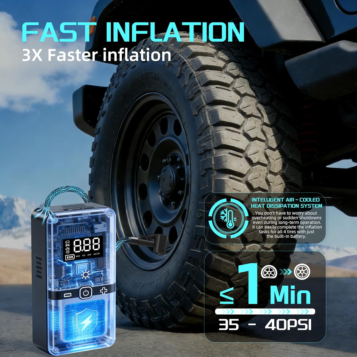 Tire Inflator Portable Air Compressor,Tire Air Pump with Digital Pressure Gauge,LED Lights&Auto Shut-Off Function,Cordless Pump with 12V DC Car Plug,Air Compressor for Car,Motorcycle,Bicycle,Ball