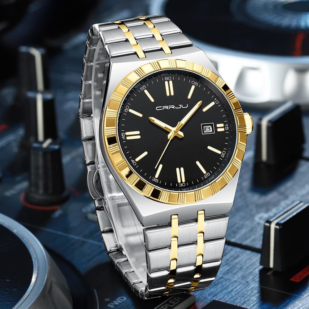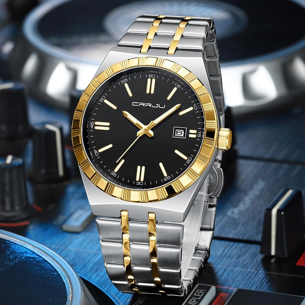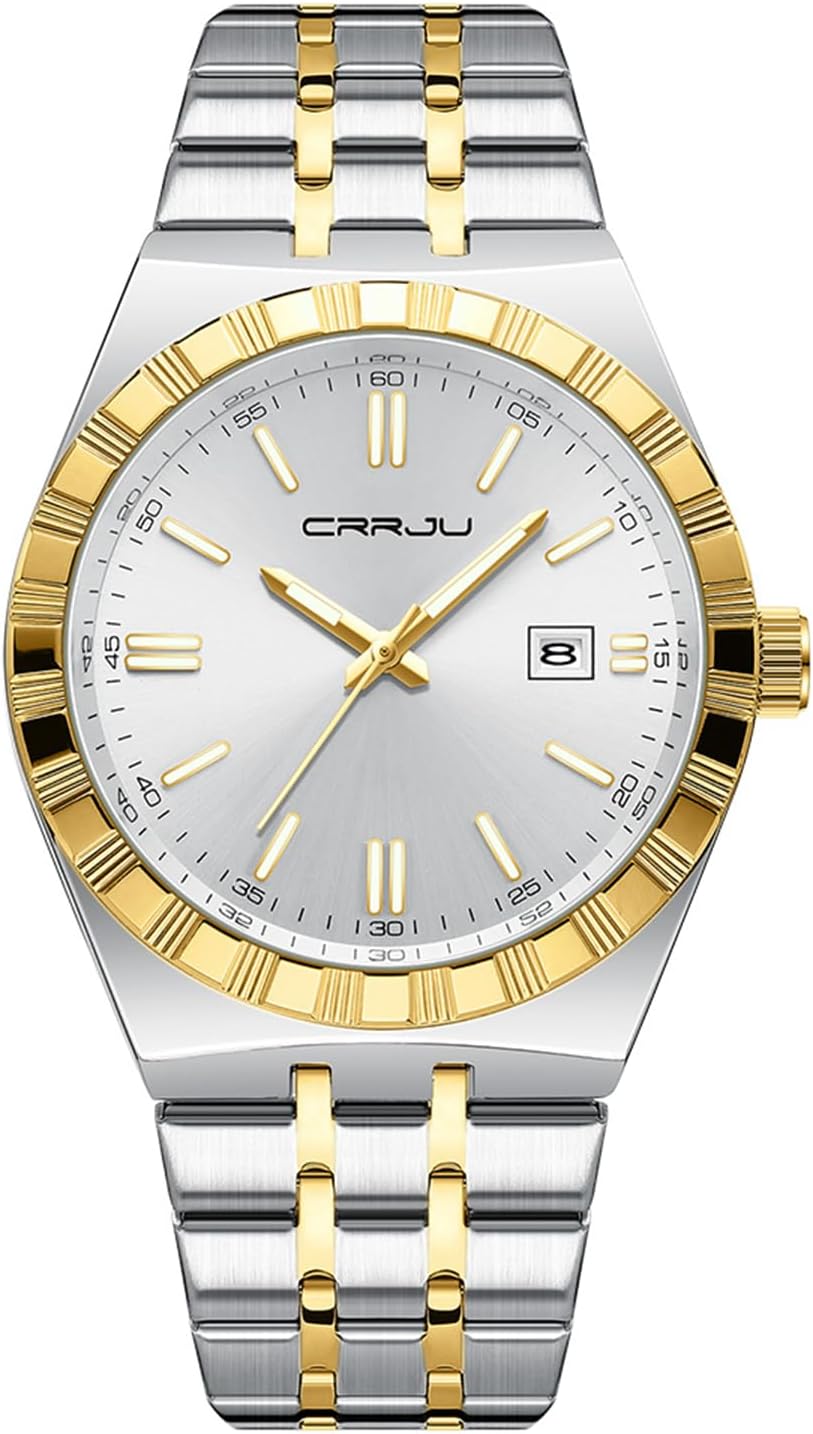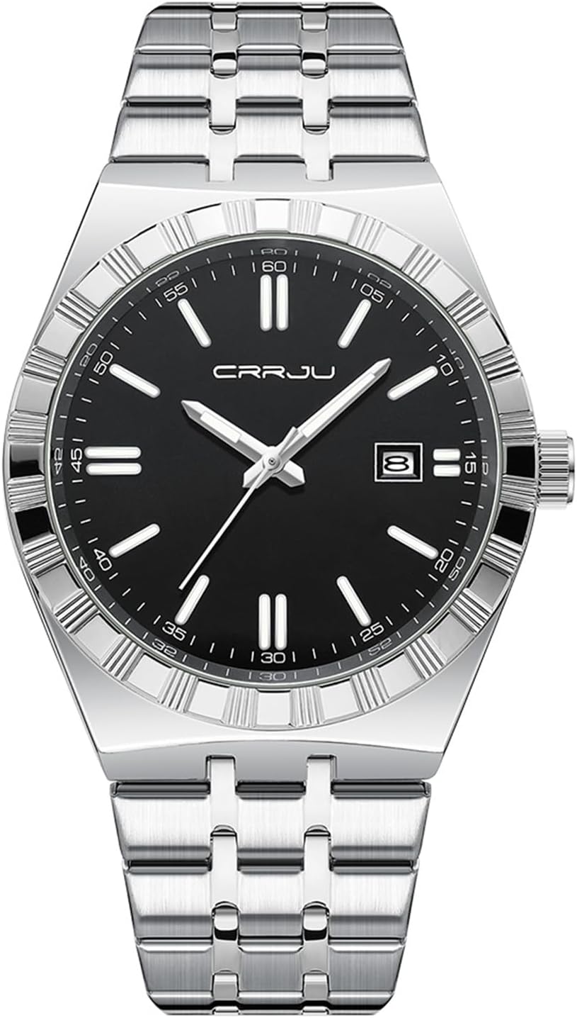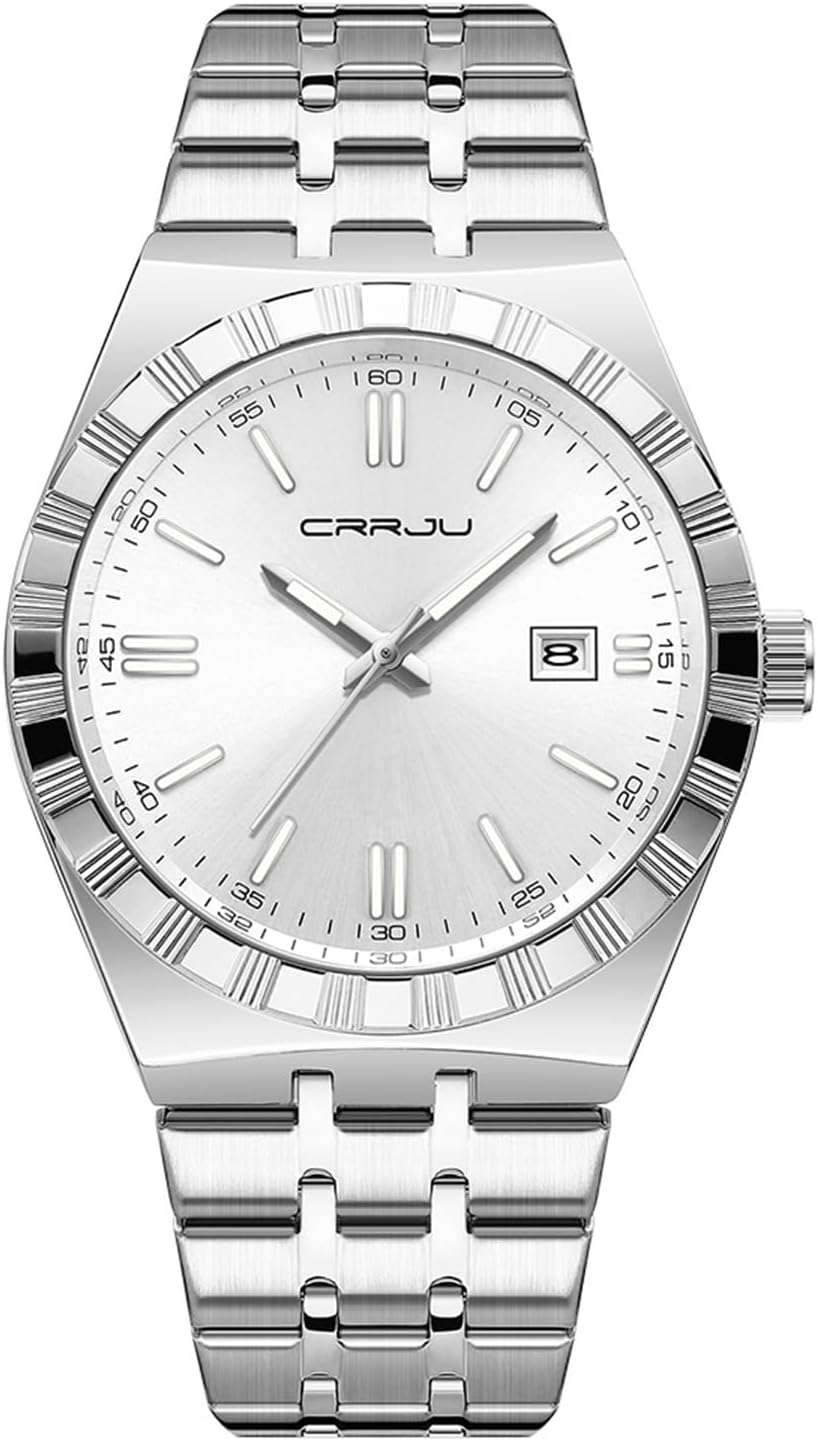 CRRJU Watches for Men,Fashion Luxury Luminous Analog Quartz Wristwatches,Business Man Calendar Watches Silver