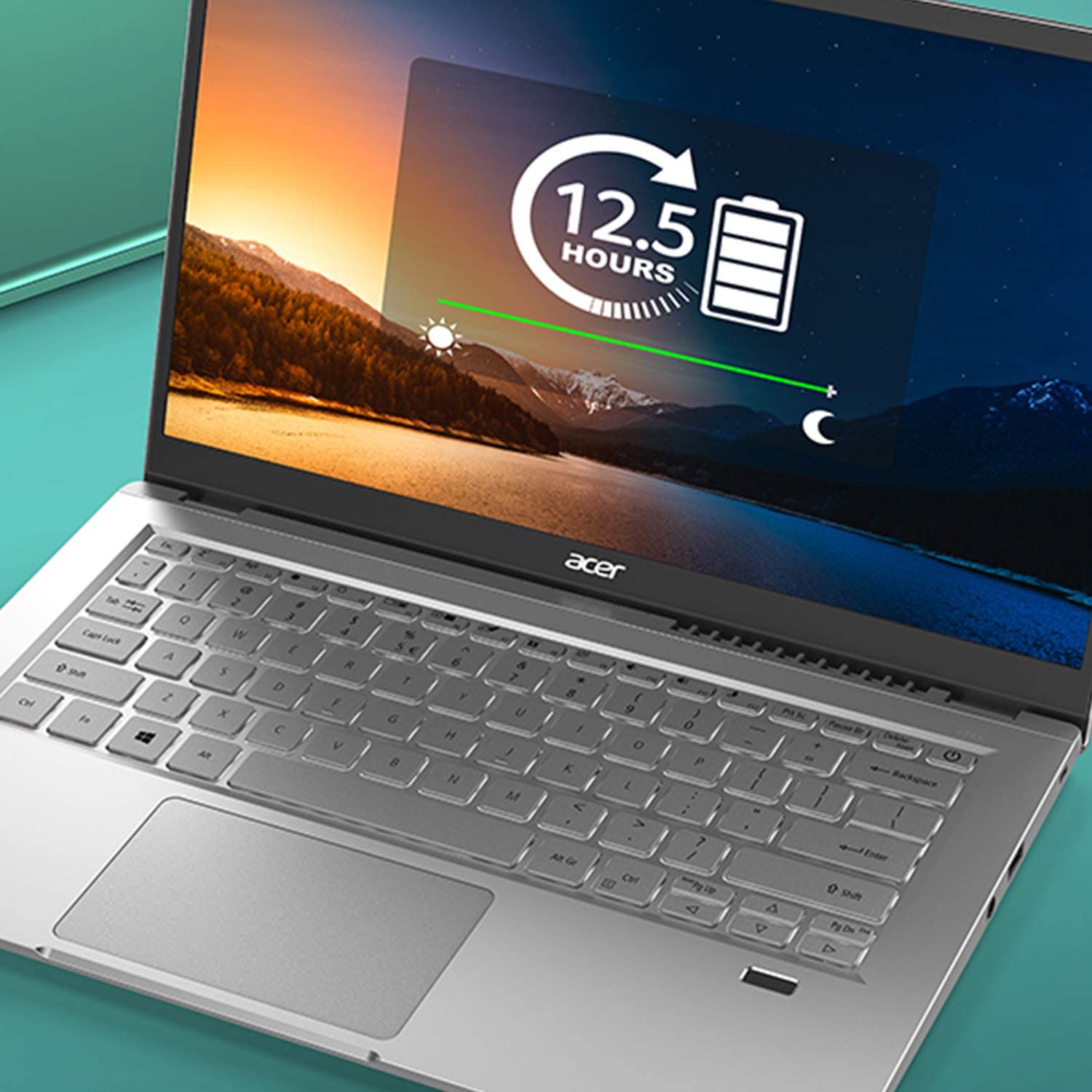It's all about the innovation. Acer products are designed for your needs and accessibility with powerful features fit for your lifestyle. The Acer Swift 3 SF314-43 laptop is a sleek machine ready for a full day. This Acer laptop is designed to be lightweight at under 3 pounds and is designed with an all-metal aluminum chassis for your carrying convenience. With a powerful AMD Ryzen 5000 Series Mobile Processor, you never have to worry about your PC keeping up with your work-related tasks. The impressive 14 inch Full HD display has a 16:9 aspect ratio for widescreen entertainment on a portable Swift 3 laptop. You can take on whatever the day brings when the latest Acer Swift laptop is your companion. In a day full of appointments and meetings, rely on the long 12.5 hour battery life from a full charge. Need more? A short 30 minute charge gives you 4 hours of video playback, and even when switched off, the Swift 3 can charge external devices through the USB Type-A port. When you're connecting at home, a public workspace, or a cafe, you can expect a fast and reliable dual-band Wi-Fi 6 connection. With a full day of productivity and entertainment ahead, the Acer Swift 3 14" laptop can maximize cooling efficiency with a stereo ring fan that draws in a larger volume of air and a wider air vent that delivers 5–10% improvement in airflow. The air inlet keyboard expels 8–10% more heat. When you need quiet, choose the Silent fan mode that gives you cooling action at a low volume. Normal and Performance modes up the cooling efficiency of this Acer Swift 3 notebook. (NX.AB1AA.001).