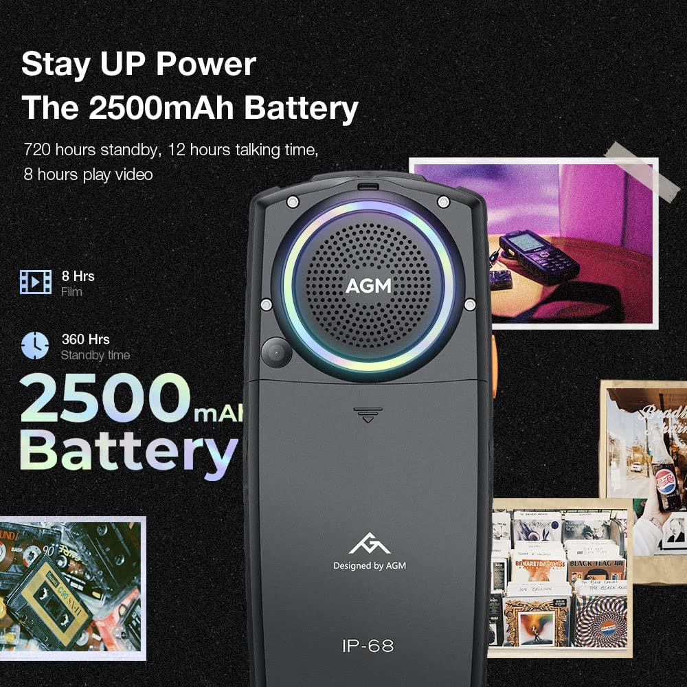 AGM M6 4G Rugged Phone Unlocked Phone Cell Phone for Seniors & Kids, Dual SIM IP68/IP69K Waterproof Phone, MIL-STD-810H, T-Mobile, 2.4" Screen 48MB+128MB 2500mAh Battery Black, Big Font, Big Speaker
