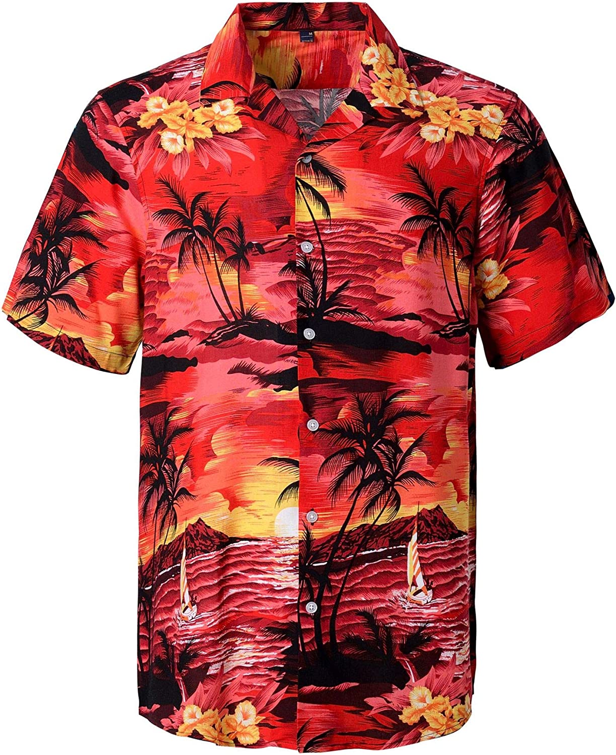 Alimens & Gentle 100% Cotton Regular Fit Short Sleeve Casual Hawaiian Shirt for Men