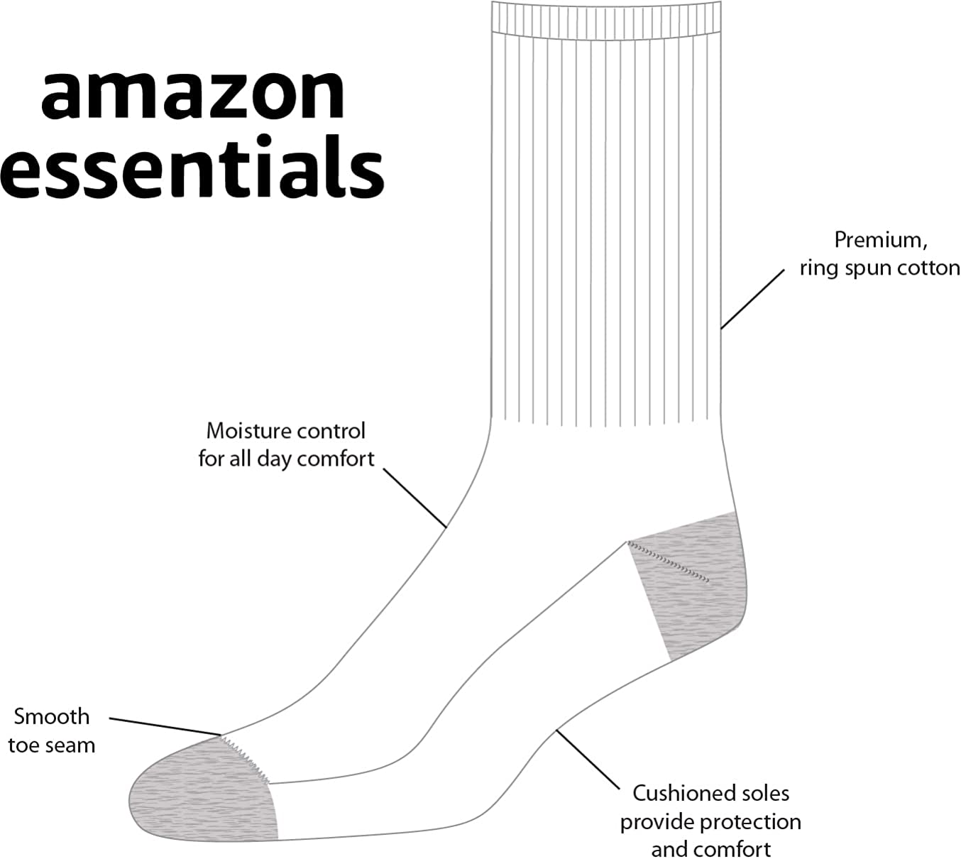 Amazon Essentials Men's Cotton Half Cushioned Crew Socks, Pack of 10