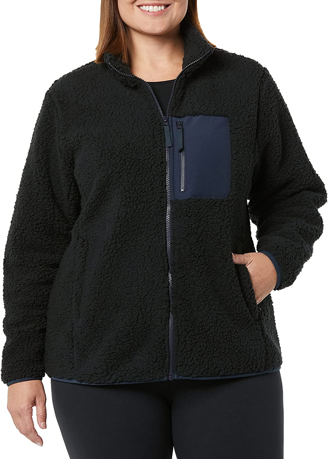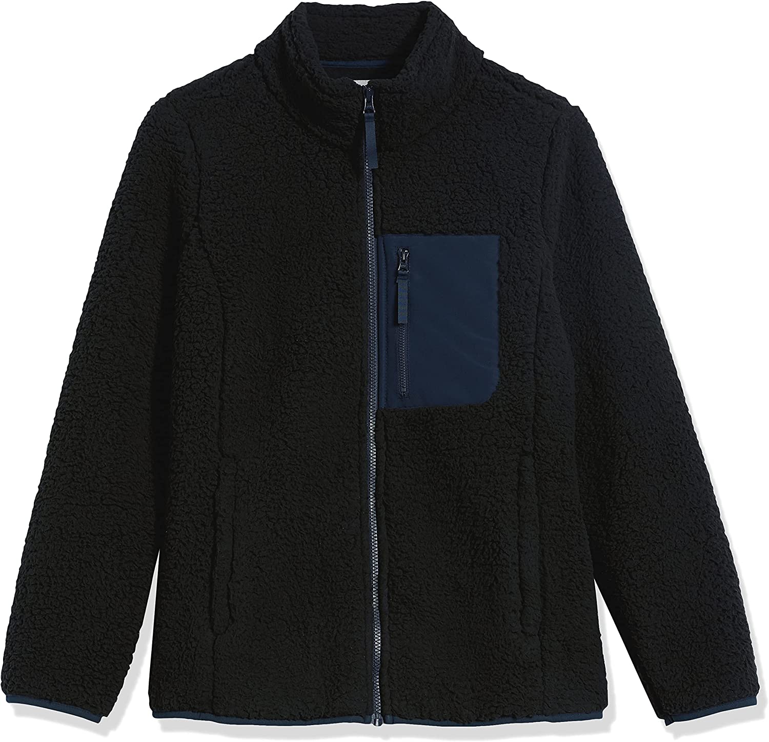 Amazon Essentials Women's Sherpa Long-Sleeve Mock Neck Full-Zip Jacket with Woven Trim