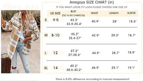 Amegoya Womens Long Sleeve Plaid Shirts Flannel Lapel Button Down Shacket Jacket Coats