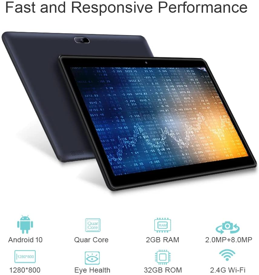 Android Tablet Pritom 10.1'' Android 10 Tablet, 2GB RAM, 32GB ROM, Quad Core Processor, HD IPS Screen, 2.0 Front + 8.0 MP Rear Camera, Wi-Fi, Bluetooth, GPS, Tablet PC(Black)