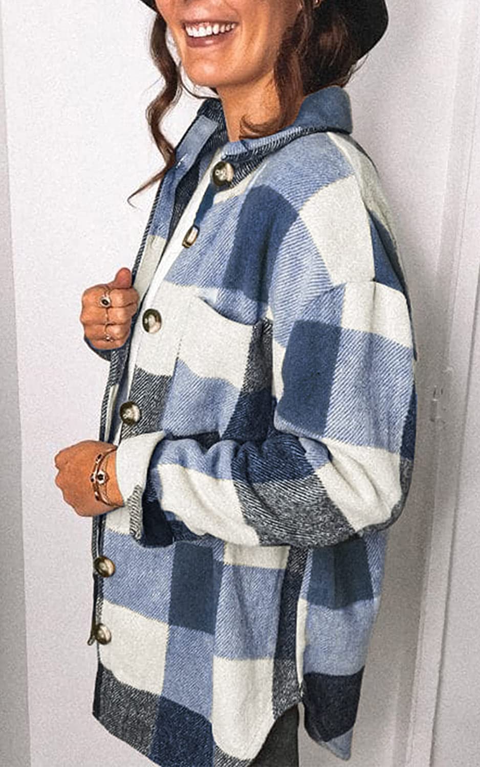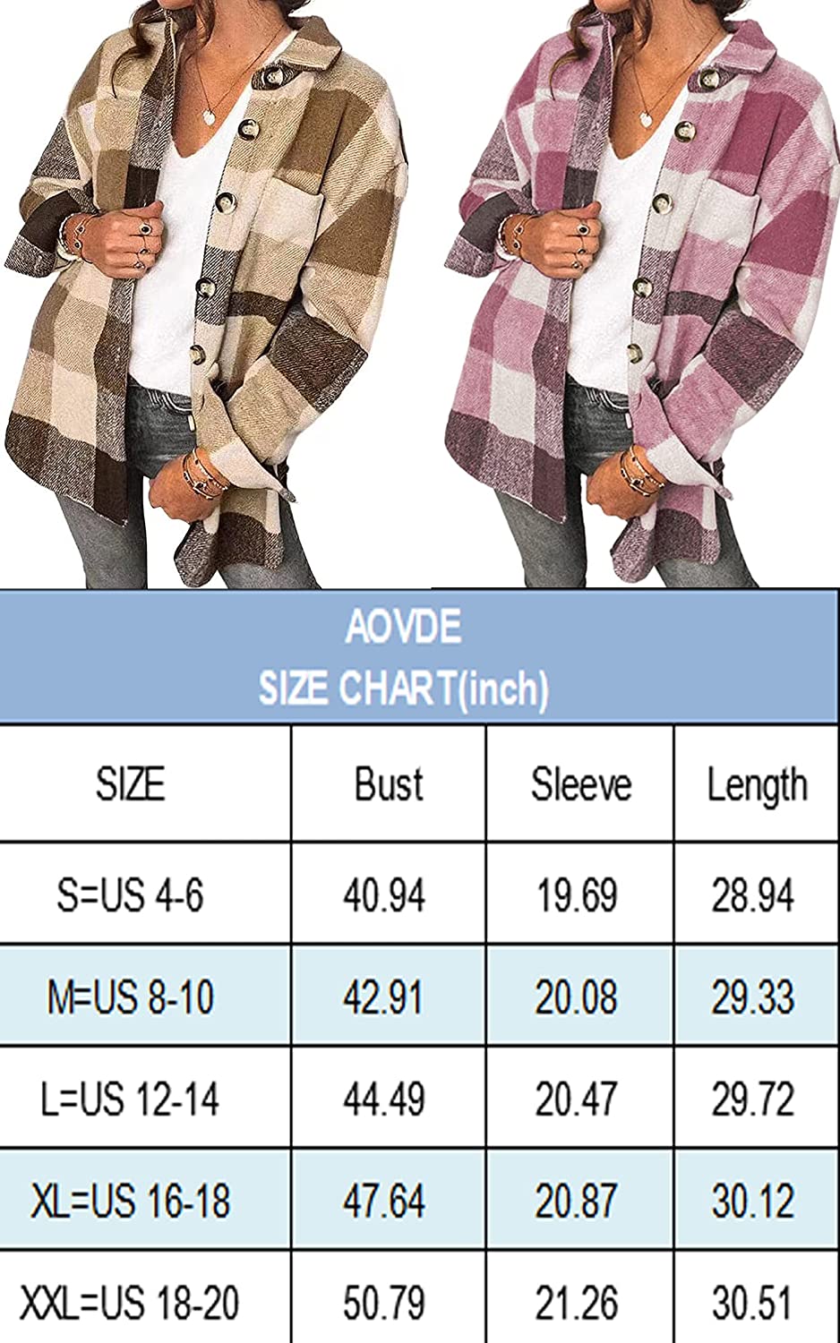 AOVDE Women's Plaid Shirts Flannel Lapel Button Down Long Sleeve Jacket Casual Boyfriend Shacket Jacket Coats