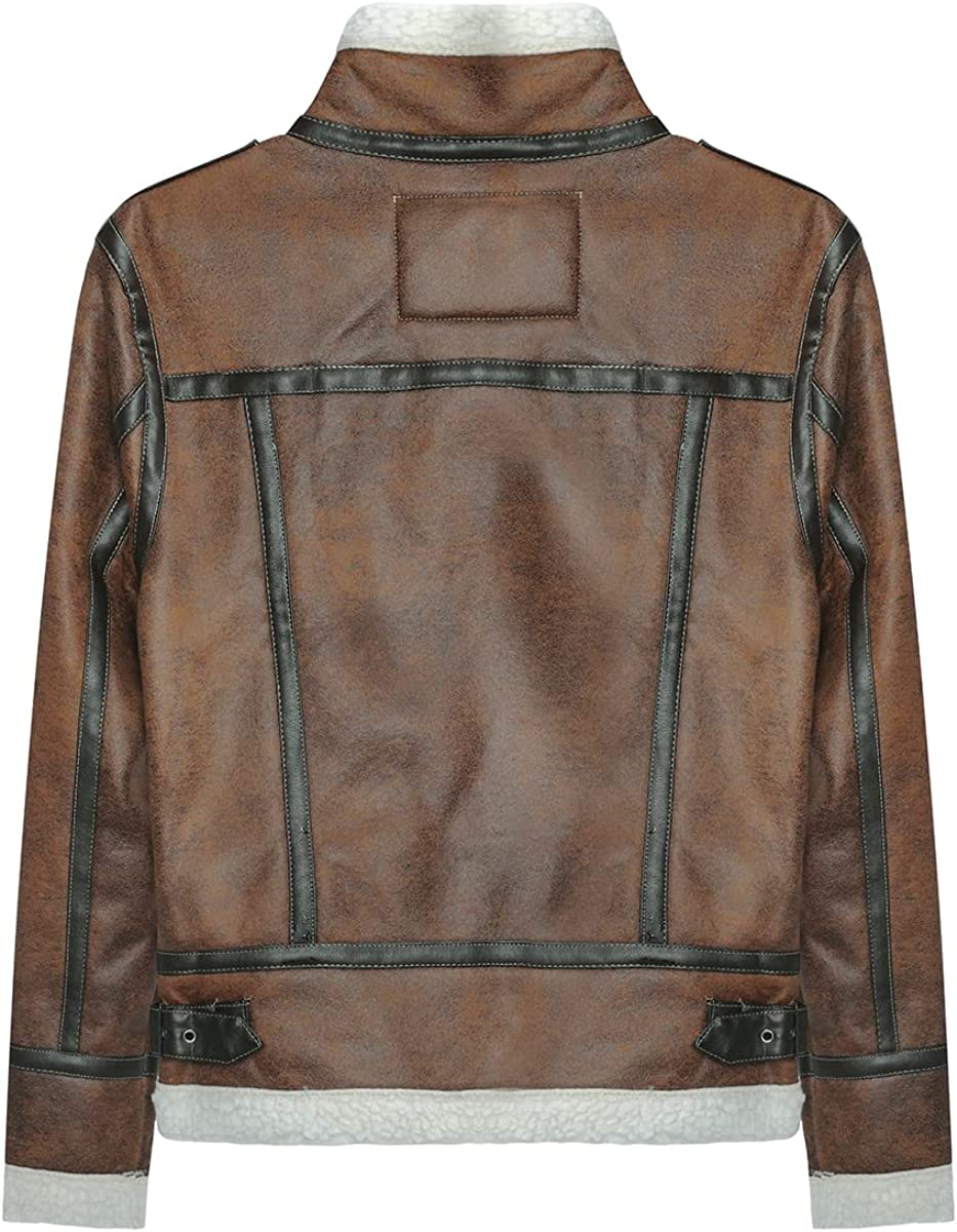 AOWOFS Men's Faux Leather Jacket Brown Motorcycle Bomber Shearling Suede Stand Collar