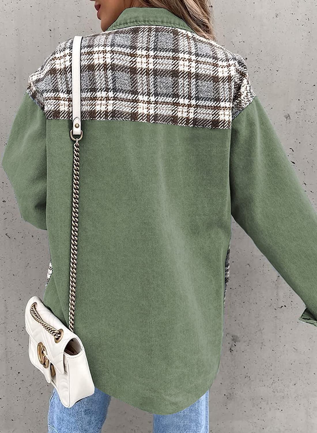 Astylish Women Jean Jacket Long Sleeve Button Down Plaid Oversized Denim Shacket Jackets