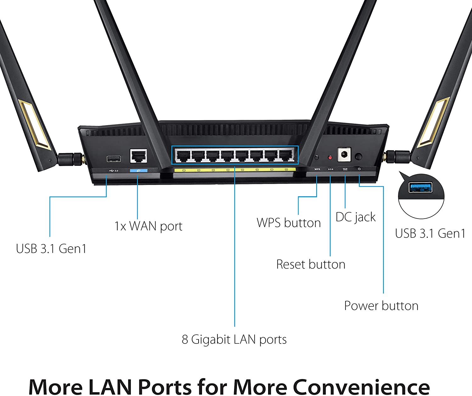 ASUS AX6000 WiFi 6 Gaming Router (RT-AX88U) - Dual Band Gigabit Wireless Router, 8 GB Ports, Gaming & Streaming, AiMesh Compatible, Included Lifetime Internet Security, Adaptive QoS, MU-MIMO