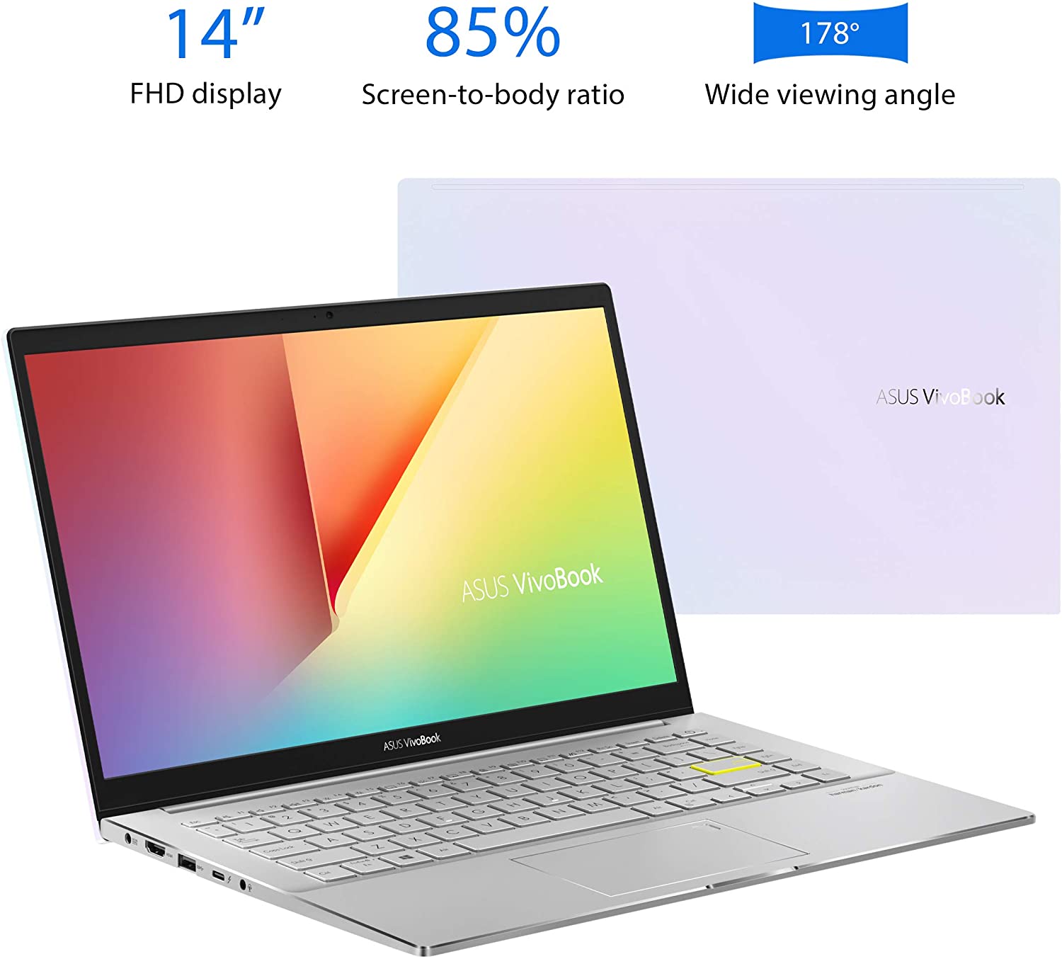 ASUS VivoBook S14 S433 Thin and Light Laptop, 14” FHD Display, Intel Core i5-1135G7 CPU, 8GB DDR4 RAM, 512GB PCIe SSD, Thunderbolt 3, Wi-Fi 6, Windows 10 Home, Dreamy White, S433EA-DH51-WH