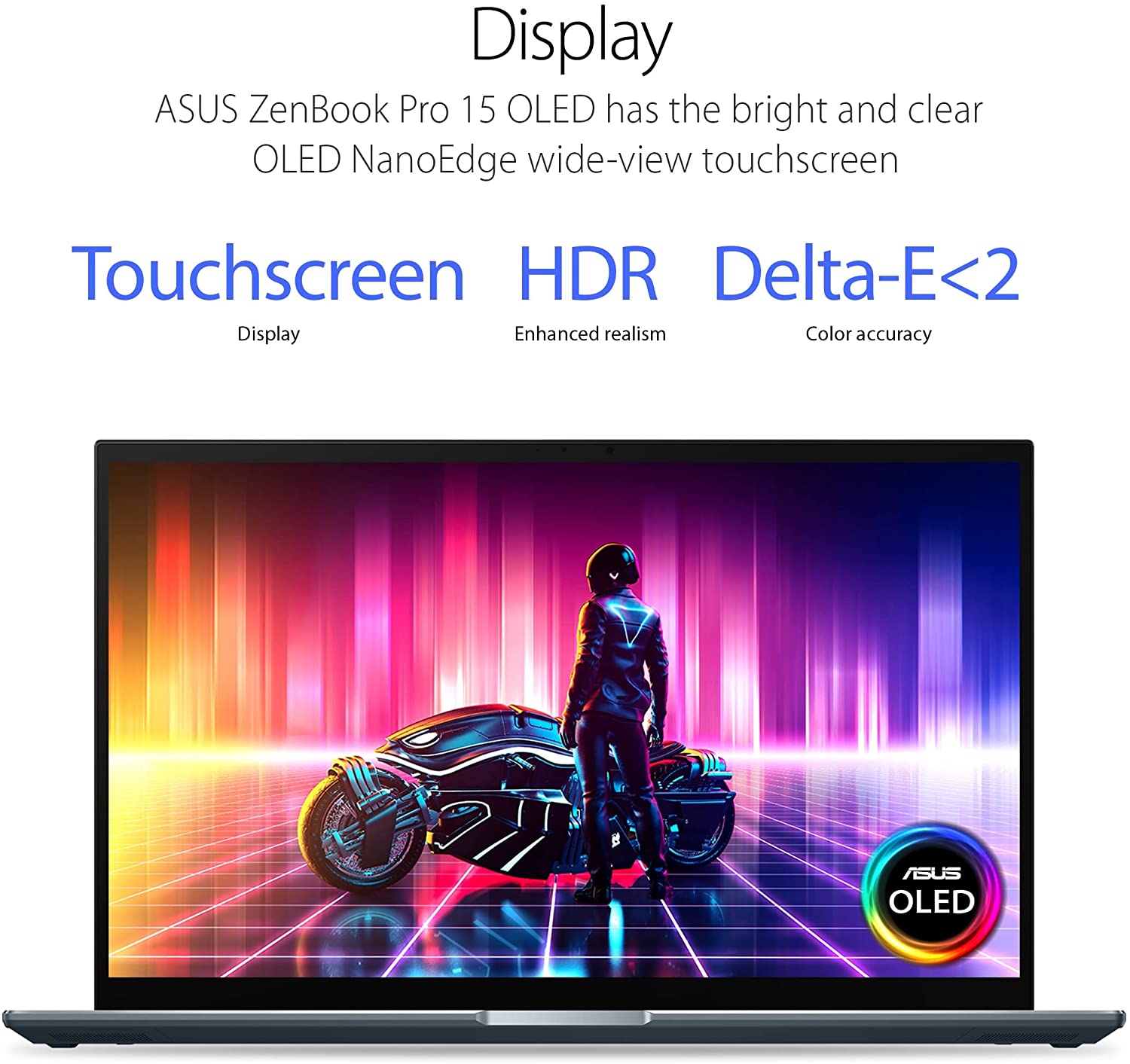Featuring a stunning 15-inch NanoEdge OLED touchscreen with an 88% screen-to-body ratio, ZenBook Pro 15 OLED gives you all the power and precision you need to realize your creative vision. With its AMD Ryzen™ 9 5900HX CPU (AMD Ryzen™ 7 5800H CPU) and NVIDIA® GeForce® RTX™ 3050 Ti GPU discrete graphics, there’s serious performance on tap for powerful productivity so you can create, anywhere, any time. WiFi Master Premium enhanced with WiFi 6 gives you uncompromised and unstoppable connectivity.