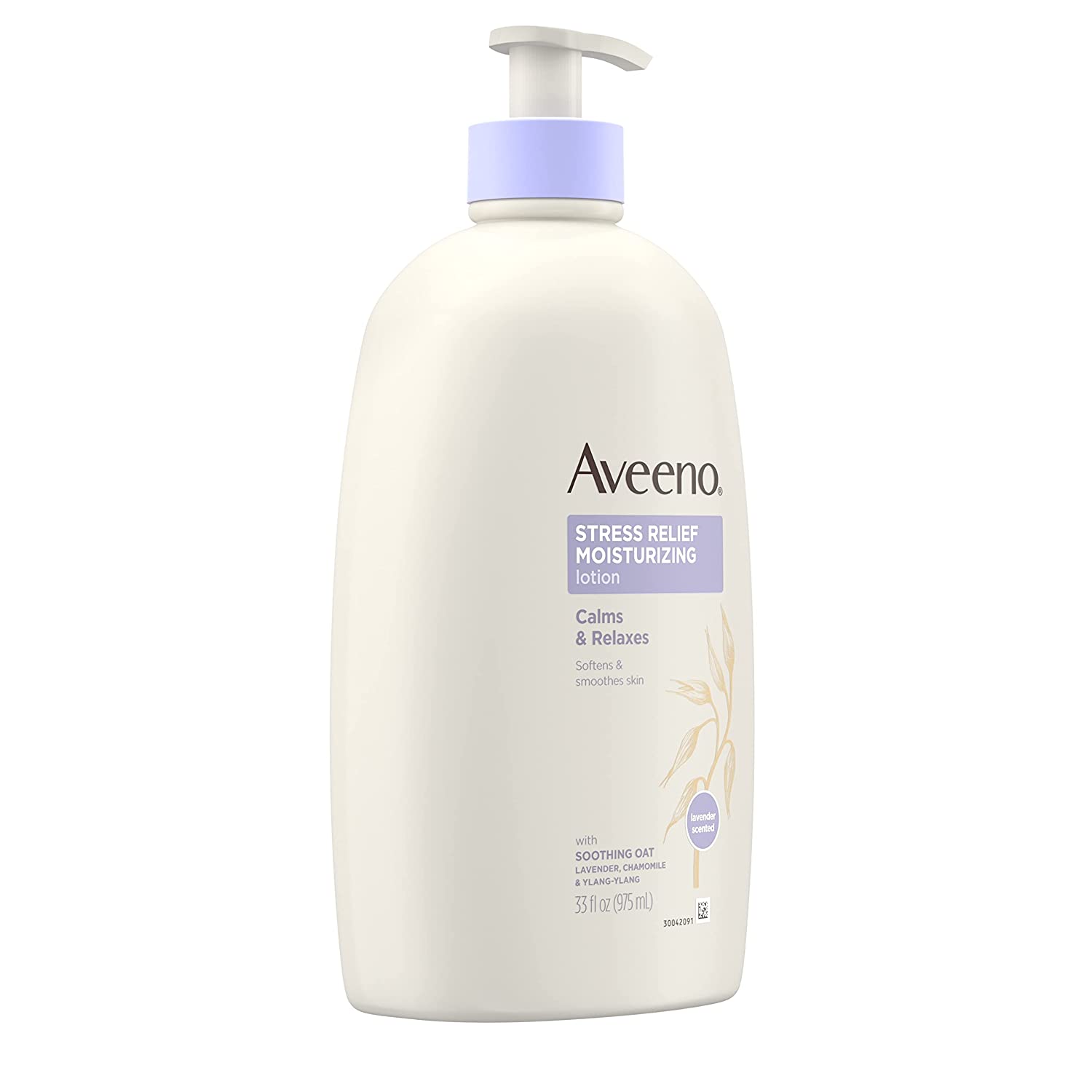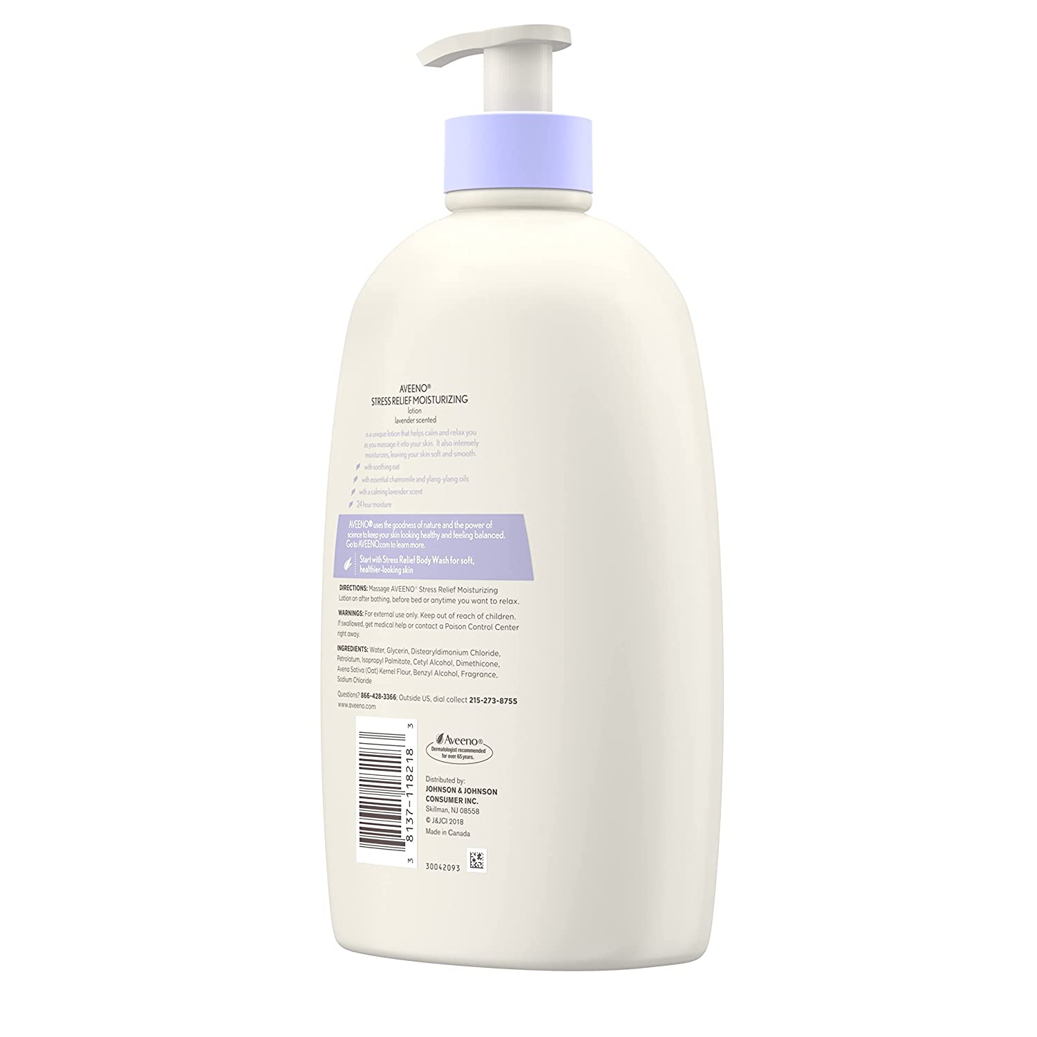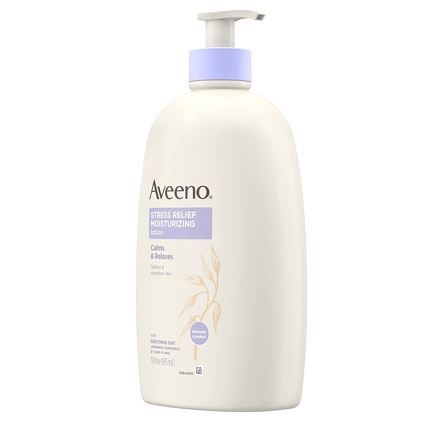 Aveeno Stress Relief Moisturizing Lotion helps calm and relax you while moisturizing for a full 24 hours to leave skin soft and smooth. Using the goodness of nature and the power of science, this soothing body lotion is made with natural oatmeal and intensely hydrates skin, leaving it feeling soft and smooth. It also combines the calming scent of lavender, and chamomile and ylang-ylang essential oils that help relieve stress as you massage it into your skin. This lavender body lotion has a nourishing non-greasy formula that absorbs quickly for lasting moisture throughout the day and is from Aveeno a dermatologist recommended brand. Good for Dry and Sensitive skin.