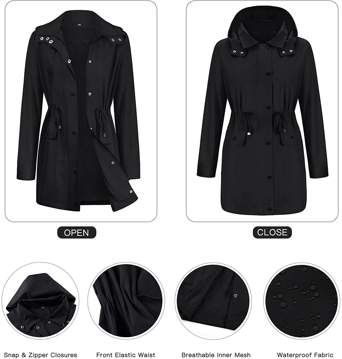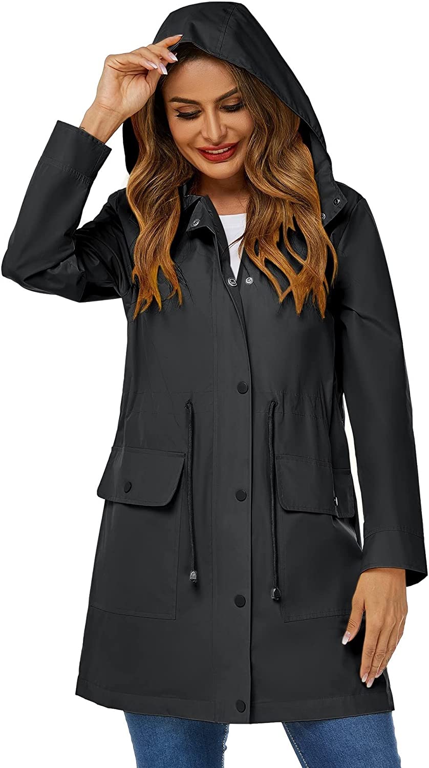 Avoogue Rain Coats for Women Rain Jacket Waterproof Lightweight Windbreaker Jacket Outdoor Hooded Long Raincoat