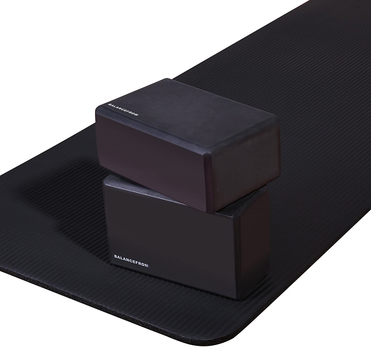 BalanceFrom GoYoga All-Purpose 1/2-Inch Extra Thick High Density Anti-Tear Exercise Yoga Mat with Carrying Strap and Yoga Blocks