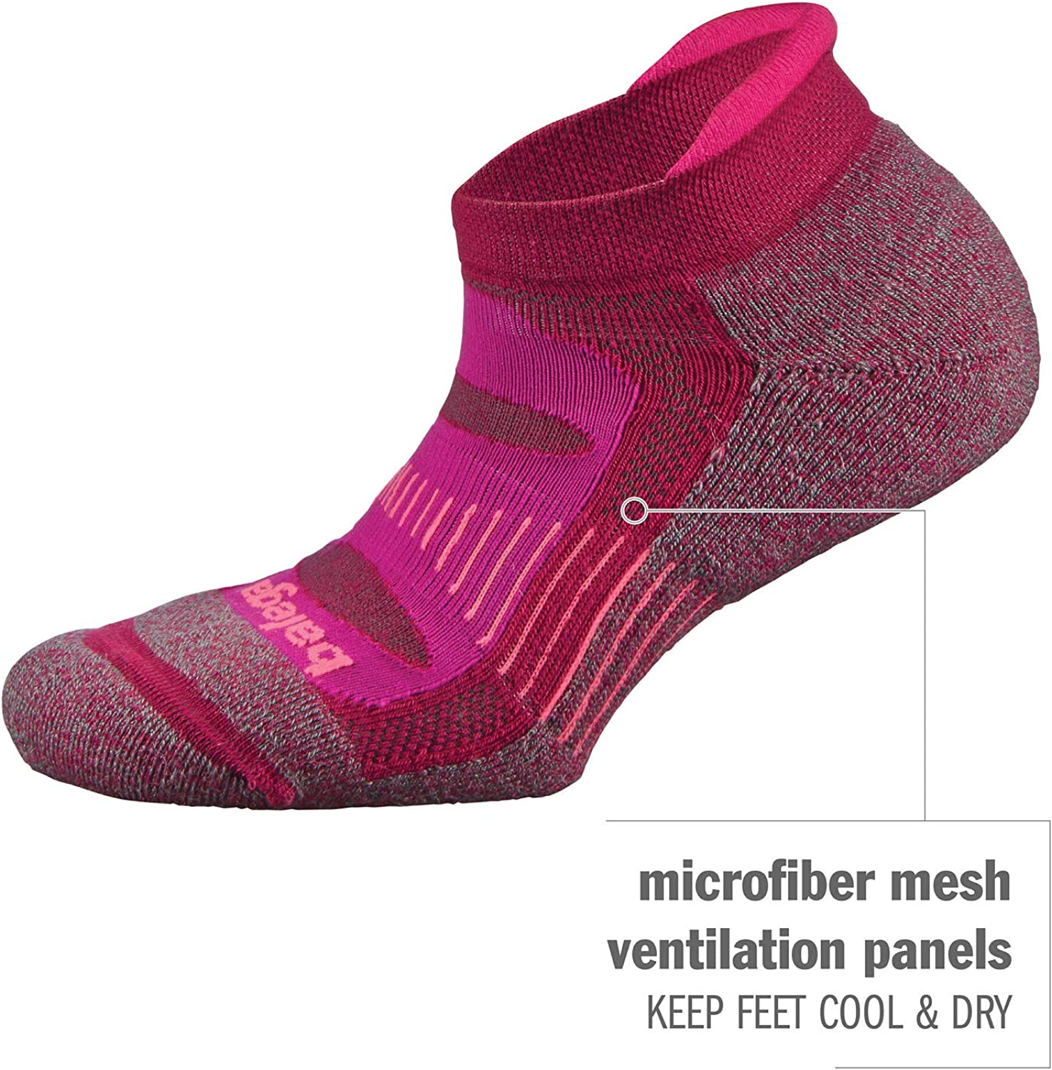 Balega Blister Resist No Show Socks for Men and Women blend the best of nature and technology, by combing natural and synthetic fibers for ultimate anti-blister performance. Soft, durable, natural mohair is known for being anti-friction, strong, shrink-resistant, while proprietary Drynamix, along with specially constructed mesh ventilation panels, wicks moisture away from the skin to keep feet dry. Together they make an exceptional, race-tested sock that protects even the most sensitive skin against sheer friction blisters. The seamless toe box minimizes chafing across the top of the foot, and a high heel tab and extra deep heel pocket ensure that socks won’t slip down into shoes during walks, runs, and hikes. The Balega Blister Resist No Show Socks features high-volume cushioning for comfort during extended activity.
