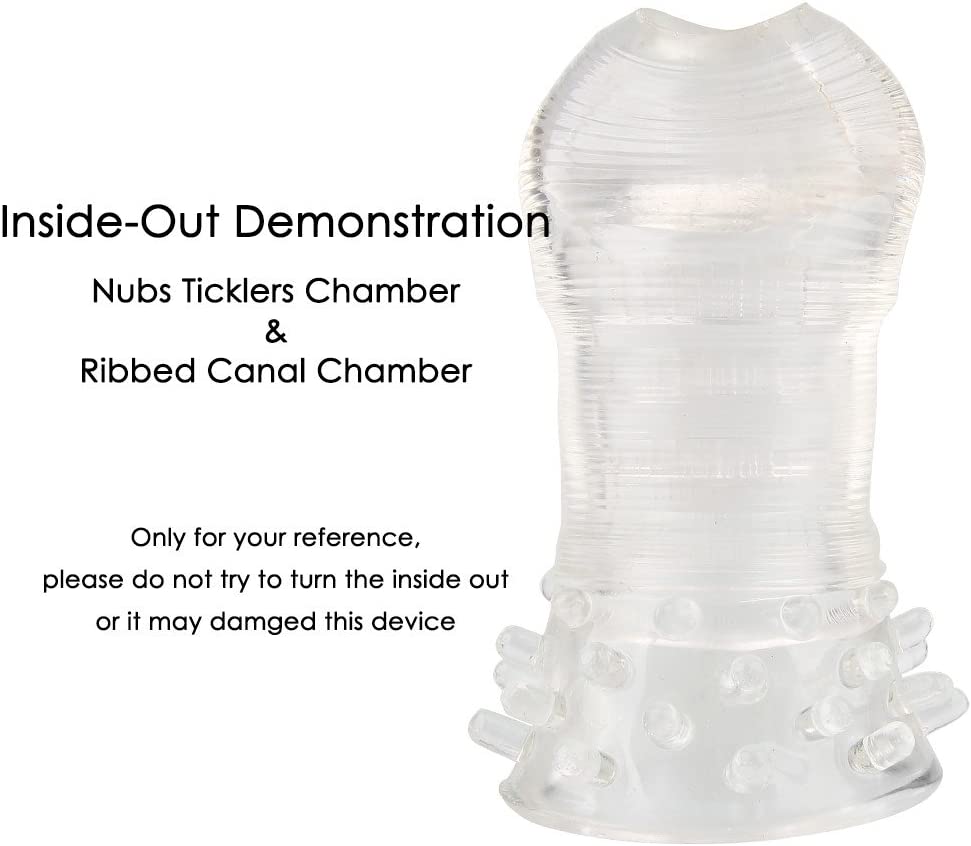 Perfect combination of ribbed and tickler chambers which ergonomic designed to simulate your meat and maximize the sexual pleasure. The stroker becomes tighter when you gradual penetrate into this device. It's so realistic that may just feel like you are being with a real human. As the material is soft and flexible, just grip harder if desire a harder squeeze, than just enjoy the tightest twat you ever imagined.
