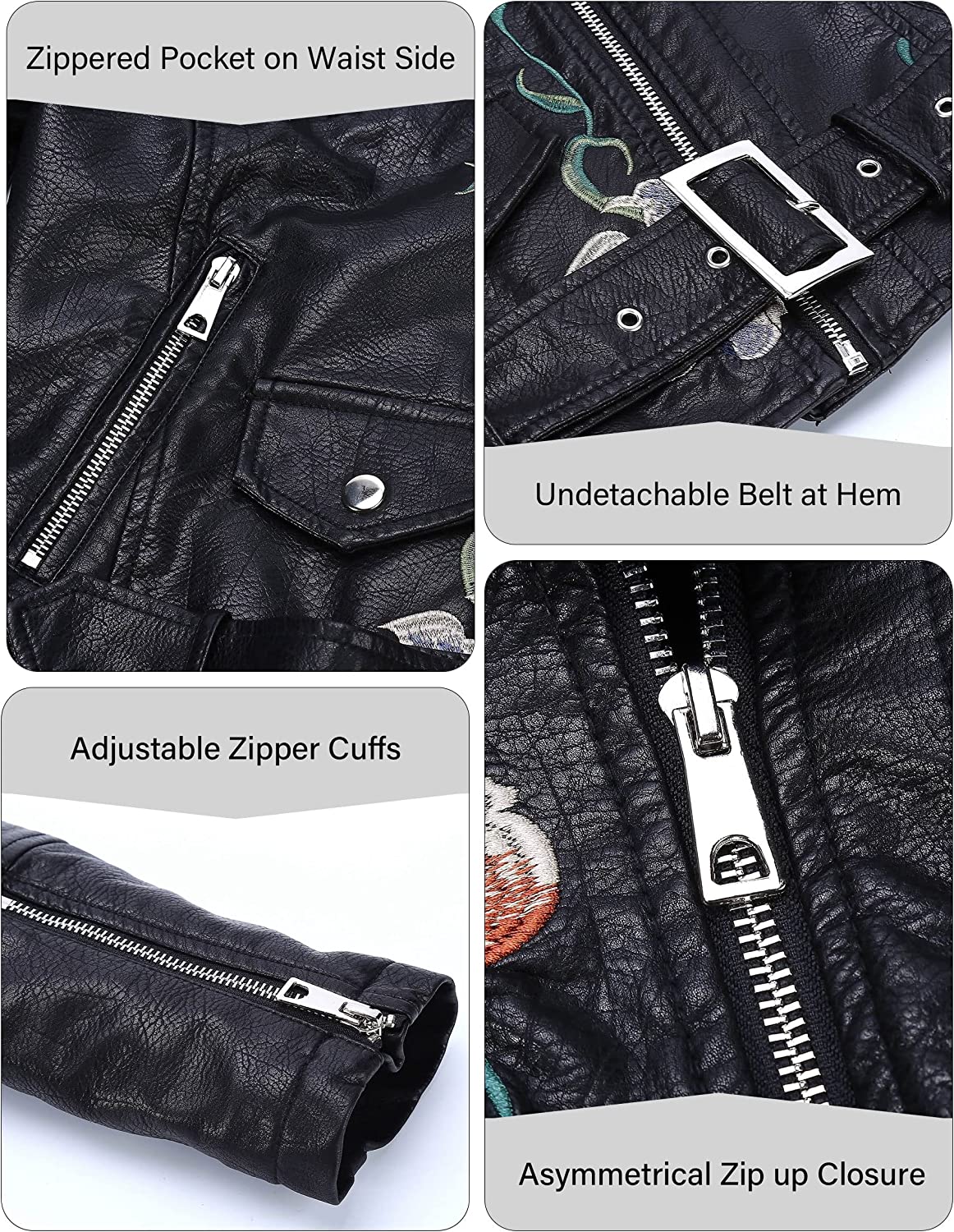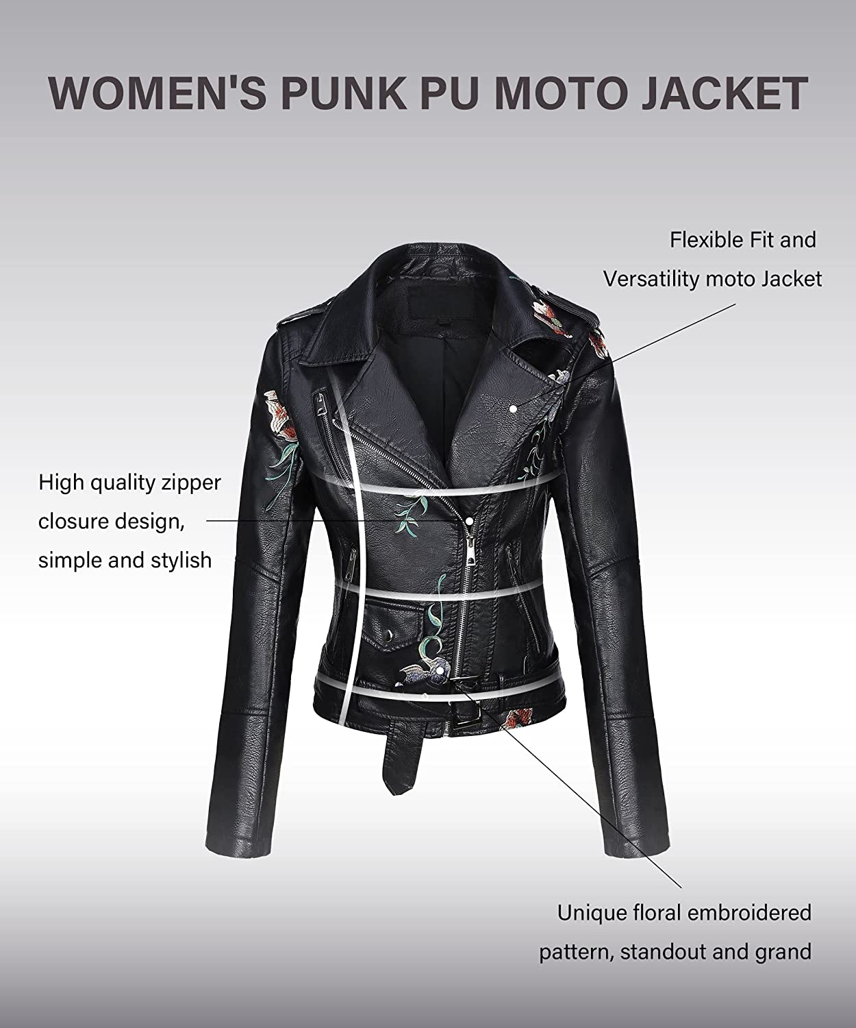 Bellivera Womens Faux Leather Casual Short Jacket, Fall and Winter Fashion Moto Bike Floral Coat