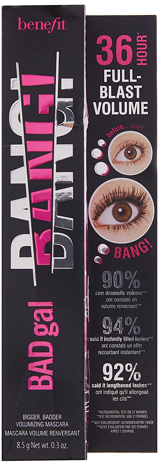Get out-of-this-world lashes! Badgal bang! 36-Hour full-blast volumizing mascara creates massive volume without weighing down lashes! The gravity-defying formula contains aero-particles, one of the lightest known materials derived from space technology. This innovative intense pitch-black mascara layers easily for bigger impact. Its custom brush is designed to reach from root to tip and corner to corner of upper and lower lashes for big volume with 360 Degree reach!