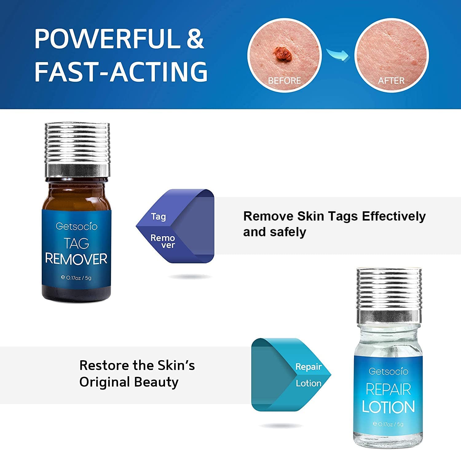 Best Skin Tag Remover & Mole Removal by Getsocio- Repairs Skin, Removes Blemishes, Remover & Repair Lotion Set, Easy to Use at Home