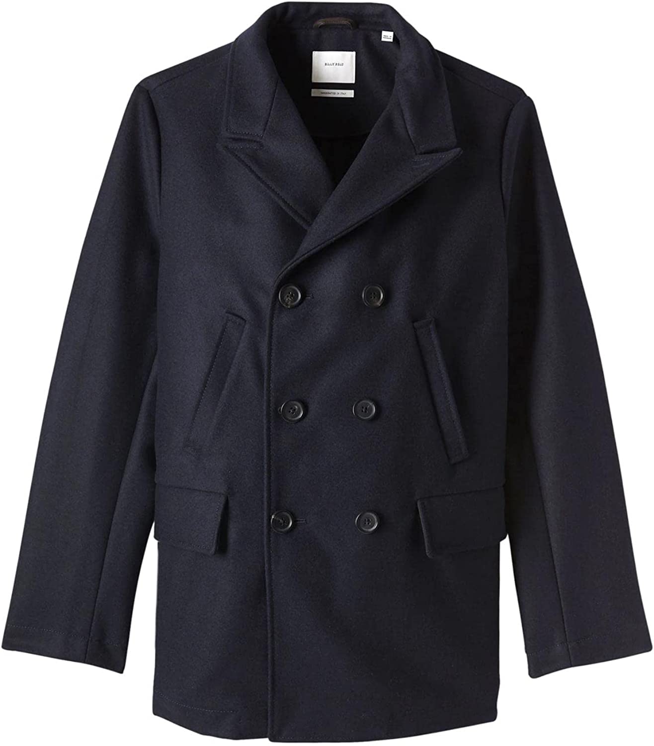 Billy Reid Men's Wool Double Breasted Bond Peacoat with Leather Details
