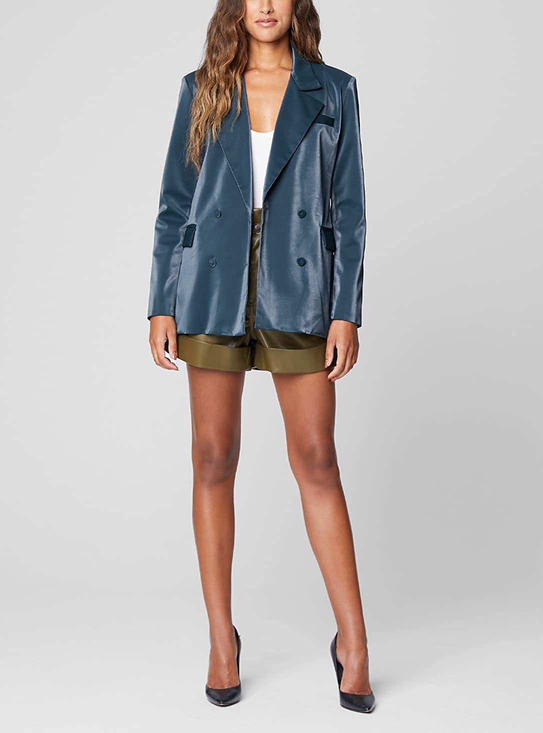 [BLANKNYC] Womens Vegan Leather Double Breasted Blazer, Comfortable Jacket & Stylish Coat