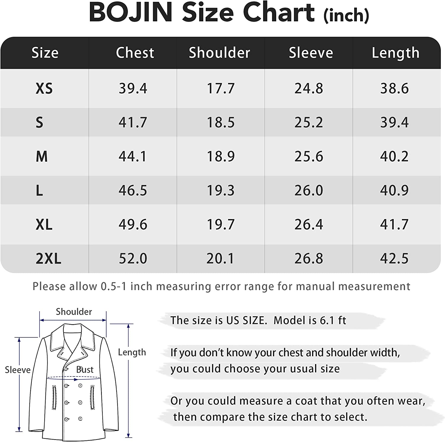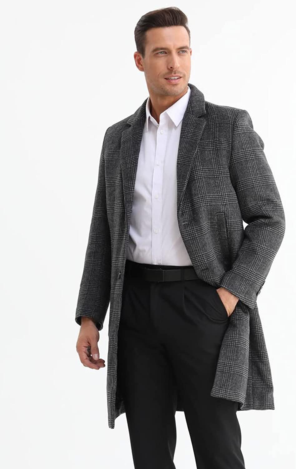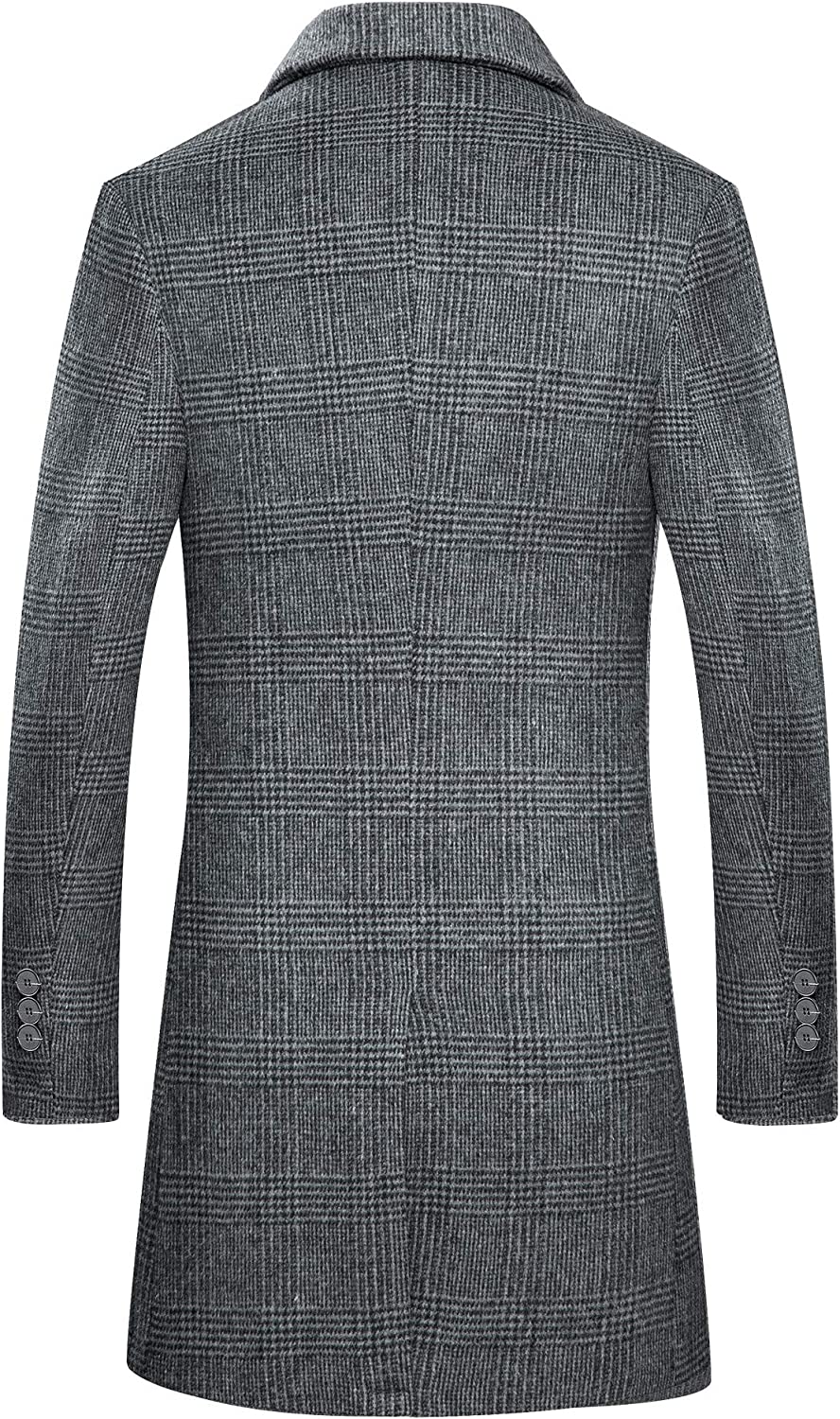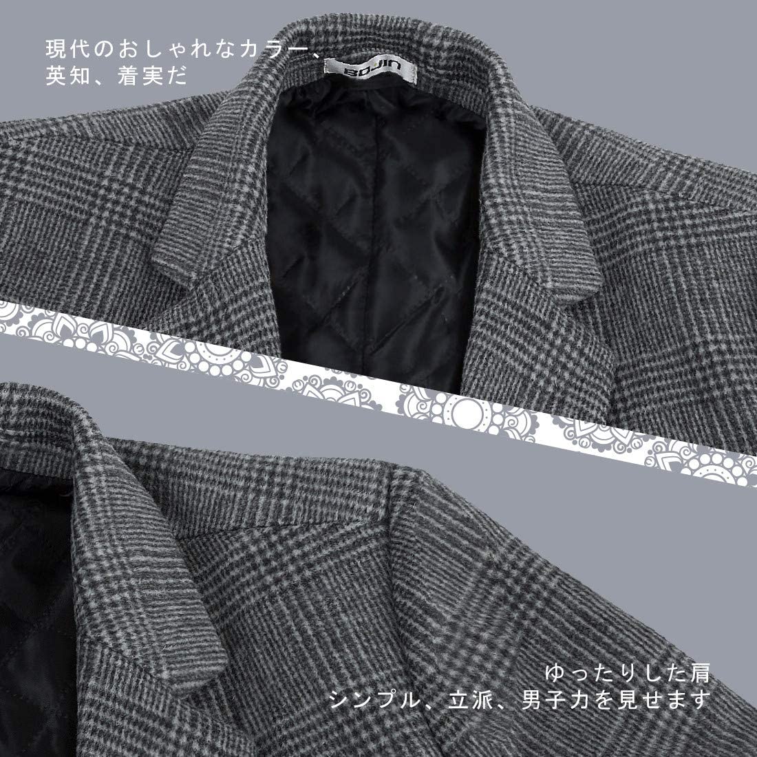 BOJIN Mens Trench Coat Wool Blend Top Pea Coat Winter Long Single Breasted Classic Stylish Business Overcoat