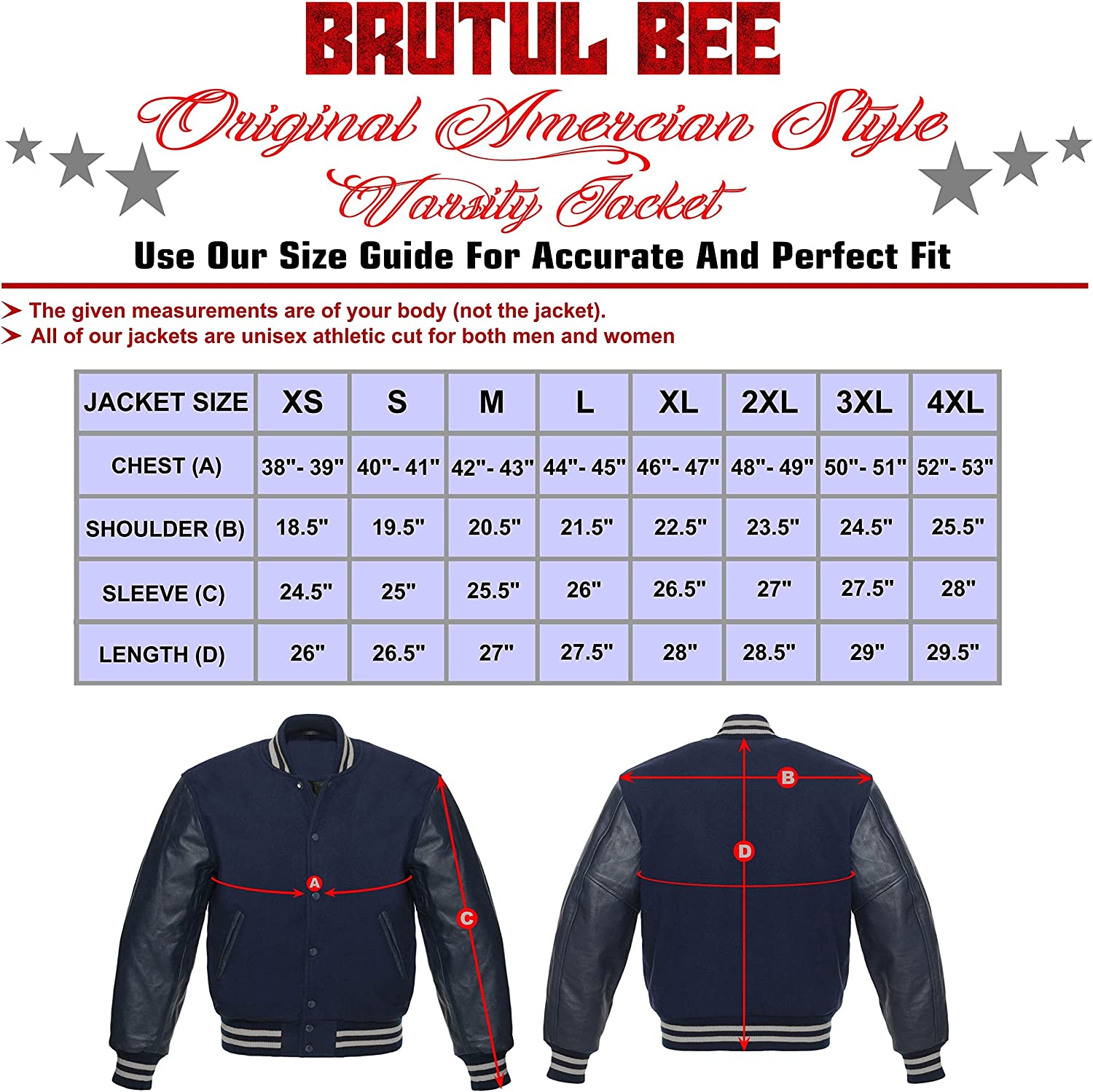 Brutul Bee Original Leather Varsity Letterman Jackets Wool & Leather Original American Style Varsity Jackets