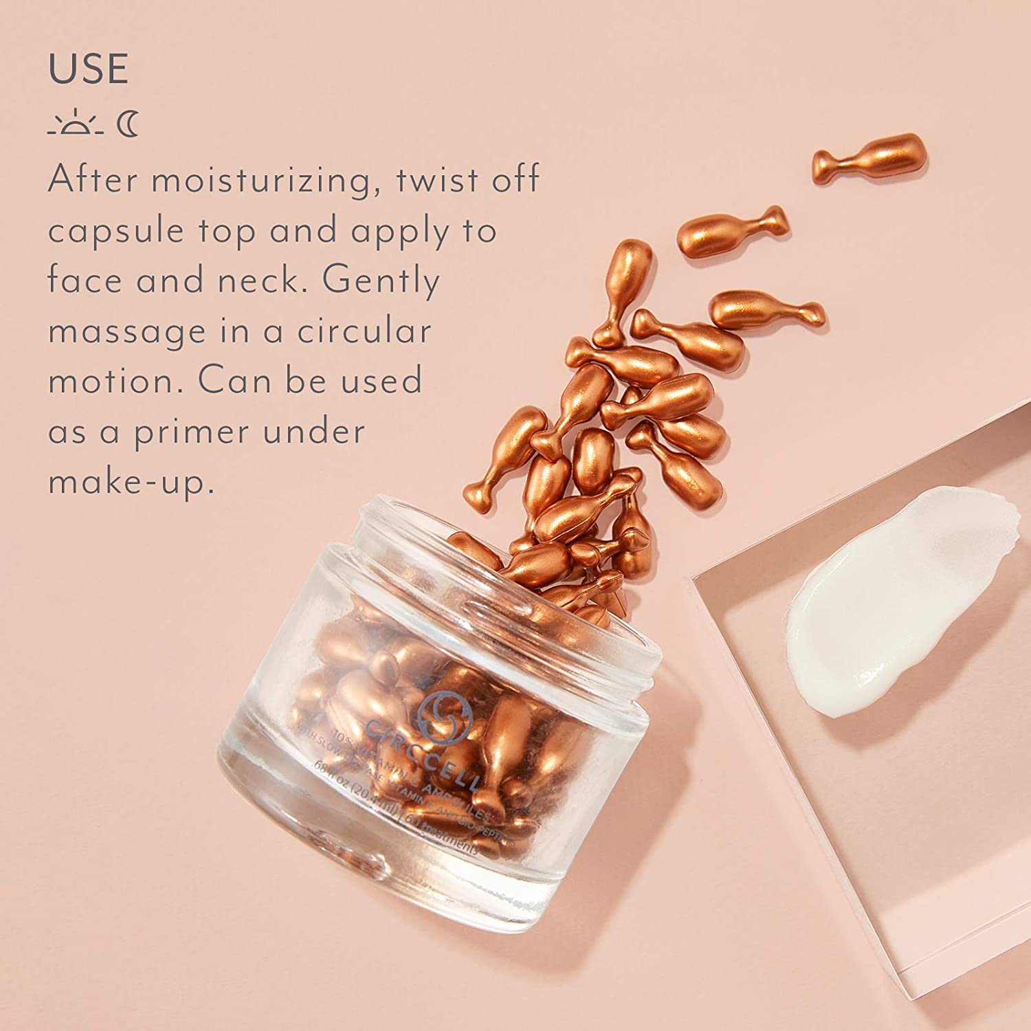 A breakthrough in clean biotechnology optimizes this antioxidant-packed anti-aging treatment with a cutting edge vitamin C delivery system. Sustainable, stable and superior, our encapsulated vitamin C blend offers immediate and sustained protection with its time-controlled release of actives, along with noticeable brightening and firming skin benefits – all delivered in a biodegradable ampoule.Containing three forms of stable vitamin C at 10% concentration to even skin tone, firm skin and provide environmental protection, the ampoules also contain vitamin E to accelerate the performance of other nutrients, and bio-peptides to supercharge the collagen-producing abilities of vitamin C.Suitable for dry, normal and oily skin, this vitamin C treatment is formulated in a pH neutral suspension making is safe for sensitive skin too. Designed for daily use, twist off the top of one vitamin C ampoule and empty the entire contents. Apply to the face, neck, décolleté and hands after cleansing, toning and prior to applying ABO Face Serum. The pearlescent texture doubles as a primer under makeup.Circcell Skincare Smartly-sourced, environmentally savvy, and delivering an experience that is oh-so-luxurious, Circcell is dedicated to transformation. Our products harness potent, age-defying ingredients and clean, natural actives known to deliver results through performance driven formulations, and the resulting collection works to keep skin beautiful from deep within. Clean, vegan and cruelty free, our skincare formulations are fragrance, paraben, and phthalate free, contain no harsh surfactants or artificial colors, and are supplied in BPA free, FSC certified packaging.