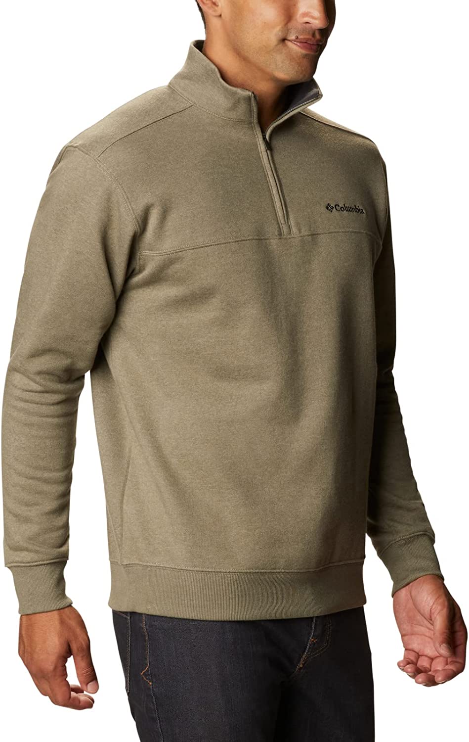 Clean and simple, this sueded fleece pullover is just the thing to keep you warm, comfortable, and in style all season long. The Columbia Men’s Hart Mountain II Half Zip Pullover is a cozy fleece layer made from plush cotton blend with a regular cut silhouette. This layer is a must for any fall or winter wardrobe and can be worn on its own for cool chilly days, or as mid layer with an outer shell for the ultimate in cold weather protection. It is a chilly-day staple perfect everyday style and warmth. You're bound to be just right in this flexible half zip pullover, a jacket crafted from a super-soft 60% cotton, 40% polyester blend. It's the perfect layering piece and first line of defense to combat the cold, and as an added bonus, the full collar is flexible enough to wear up or down, depending on your desired level of toastiness. Columbia offers this pullover in a wide range of colors and sizes. Available in extended sizing. Regular Fit. To ensure the size you choose is right, utilize our sizing chart and the following measurement instructions: For the sleeves, start at the center back of your neck and measure across the shoulder and down to the sleeve. If you come up with a partial number, round up to the next even number. For the chest, measure at the fullest part of the chest, under the armpits and over the shoulder blades, keeping the tape measure firm and level.