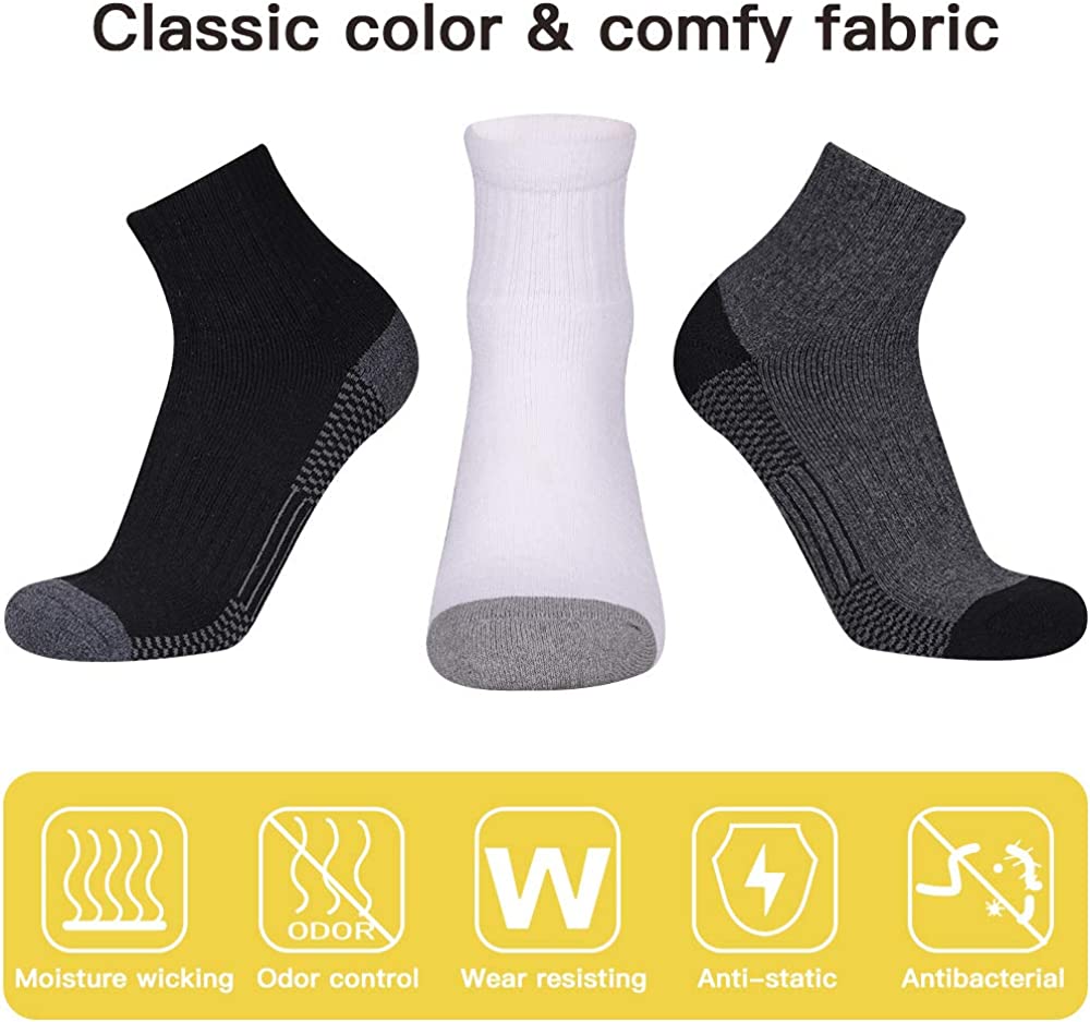 These athletic socks has full cushion reduce foot pain during sports or daily activities,to provide more durability and prevent blister.