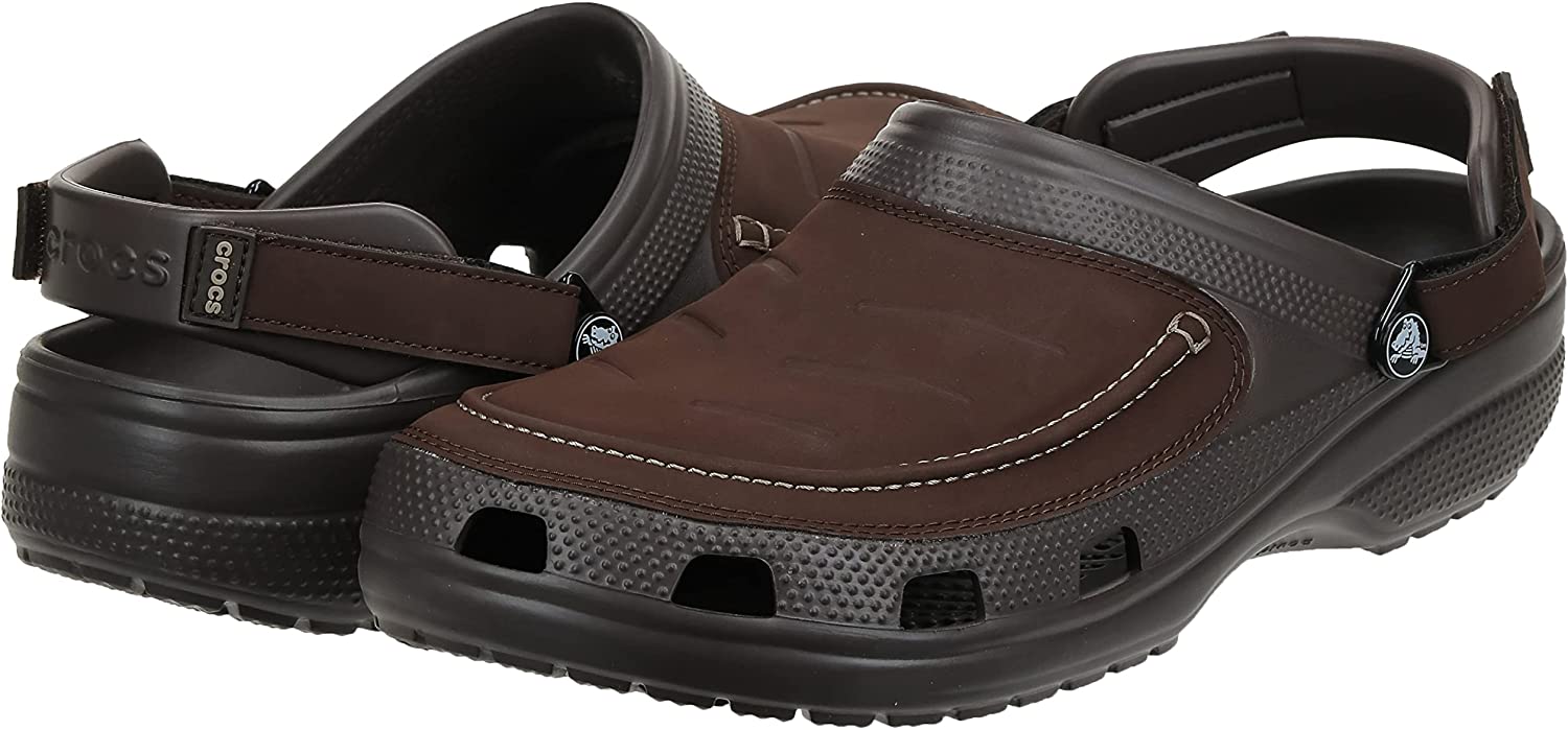 Faux leather uppers and adjustable heel straps add a dose of ruggedness to the Men’s Classic Yukon Vista II Clogs. With a hook-and-loop closure system that also pivots forward, you’re free to choose between a hands-free slide or secured fit. Croslite foam outsoles and the superbly cushioned LiteRide footbeds can handle the outdoor elements while providing true comfort around the campfire, on the trail, or back home.