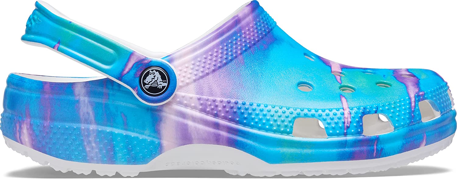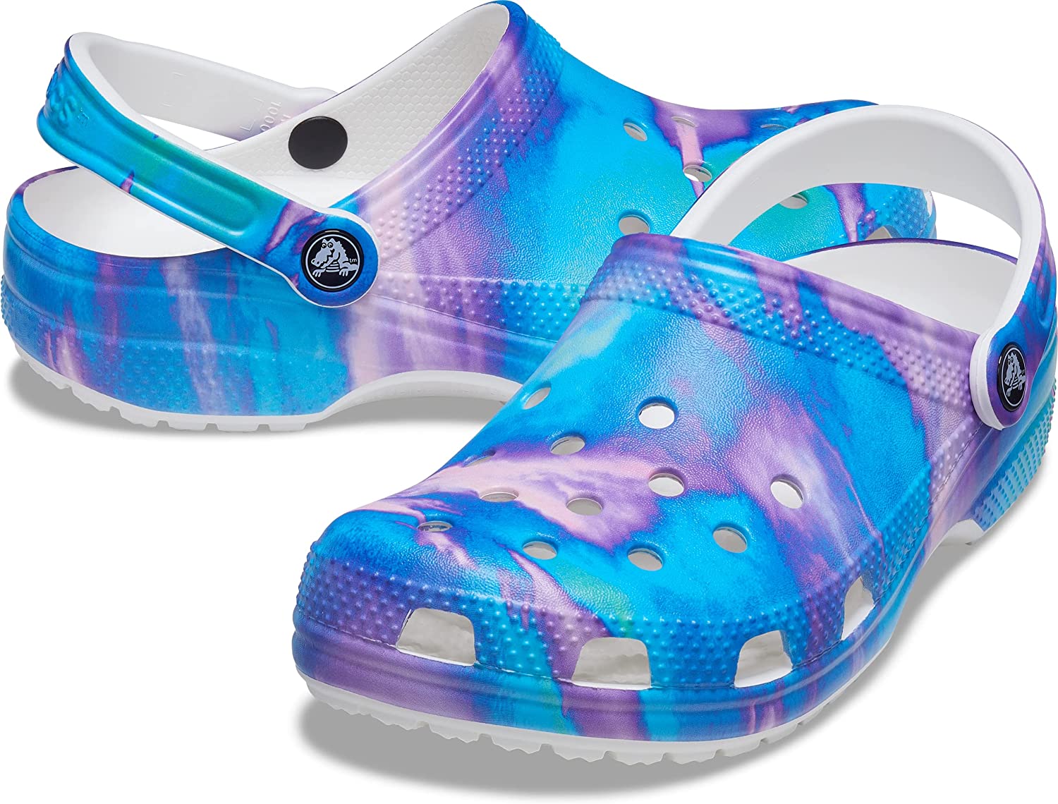 Timeless, fun and full of peaceful good vibes, the bright pops of tie-dye graphics on these clogs are the perfect way to make a groovy style statement. On the go or just hangin’ out. Grounded in comfort, spiked with personality for all ages. From downtime to downtown, these are ready to rock wherever you choose to roll.