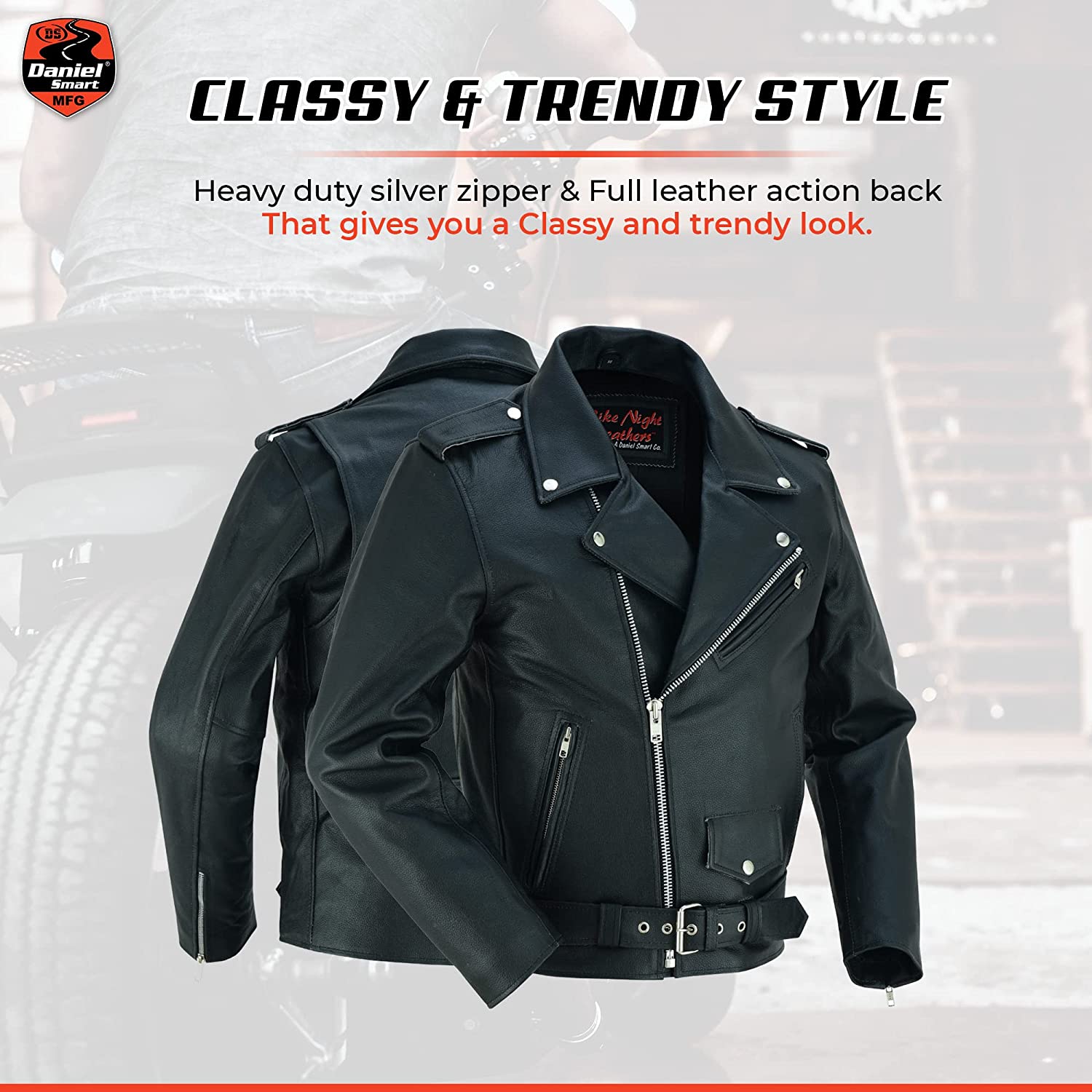 Daniel Smart Classic Men’s Leather Jacket - Economy Grade Cowhide Motorcycle Leather Jacket with Plain Sides & Armory Pockets