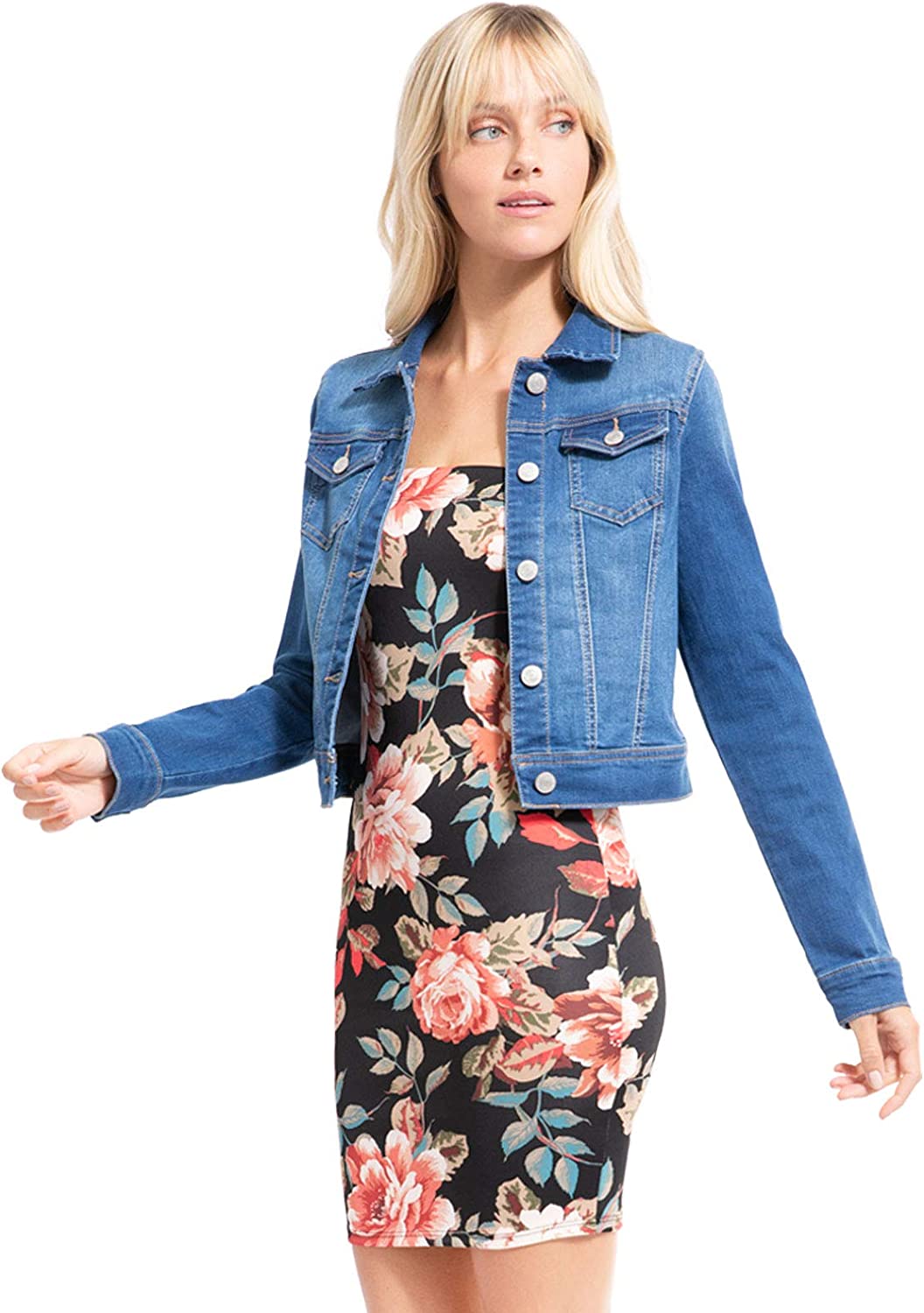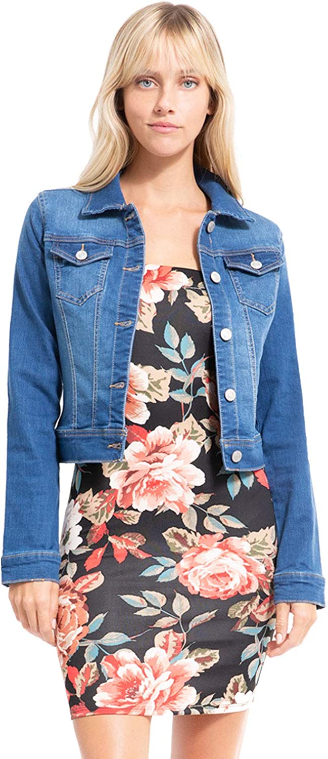 Design by Olivia Women's Classic/Destroyed Vintage Washed Long Sleeve Denim Jean Jacket