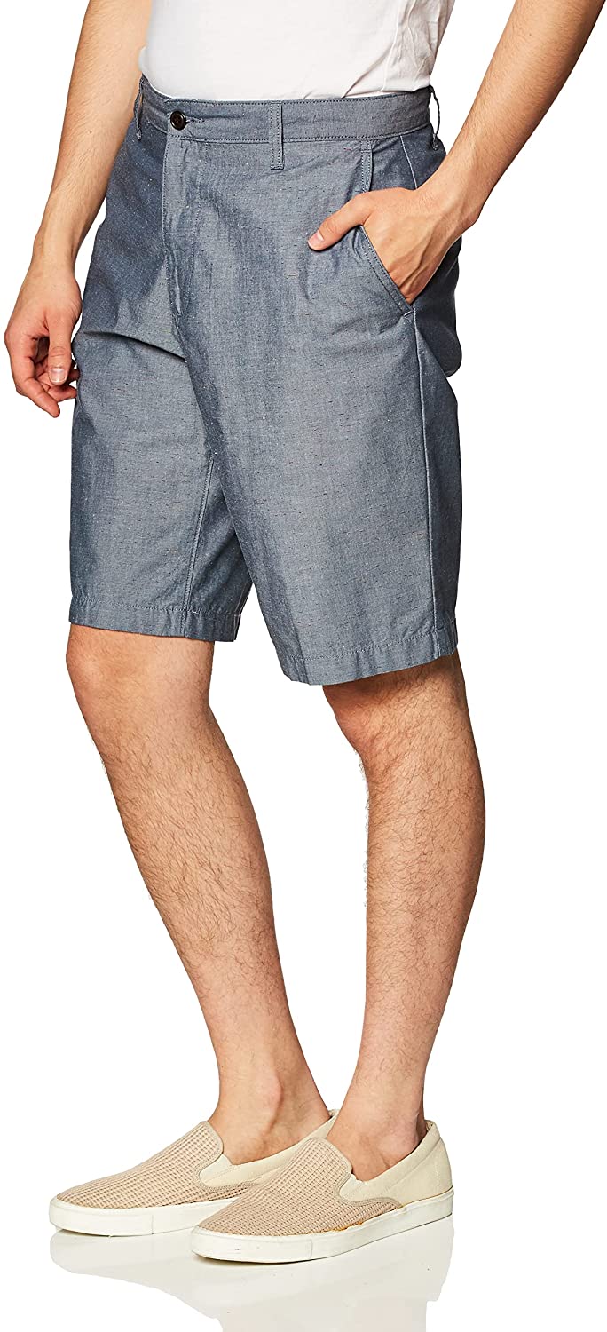 We call these the perfect shorts for men. With a slightly shorter inseam for a modern look, these men's khaki shorts feature durable stretch fabric for comfort and performance, plus clever features like a smart phone pocket. With a 9.5" Inseam, the length of these stretch khaki shorts hits at or just above the knee depending on how high or low the customer wears his shorts.
