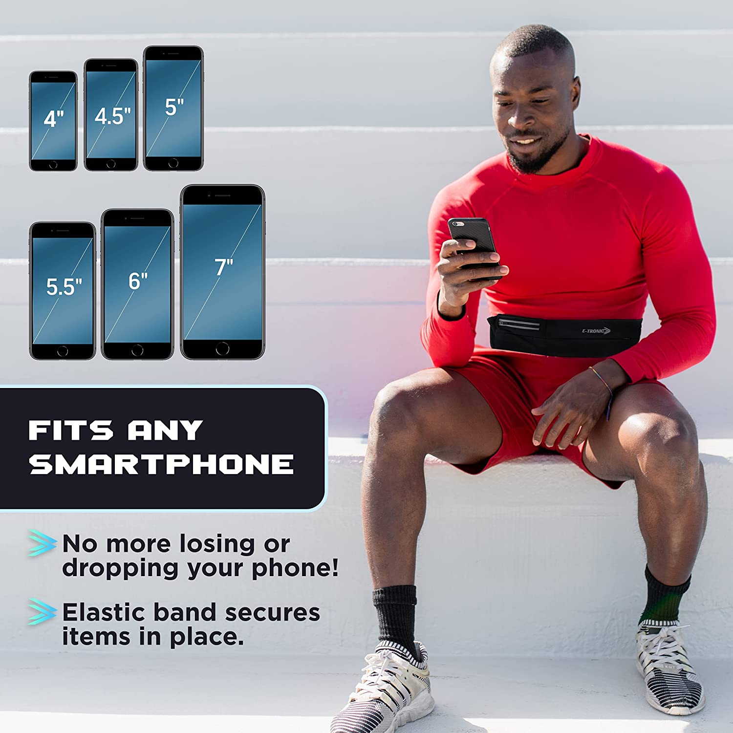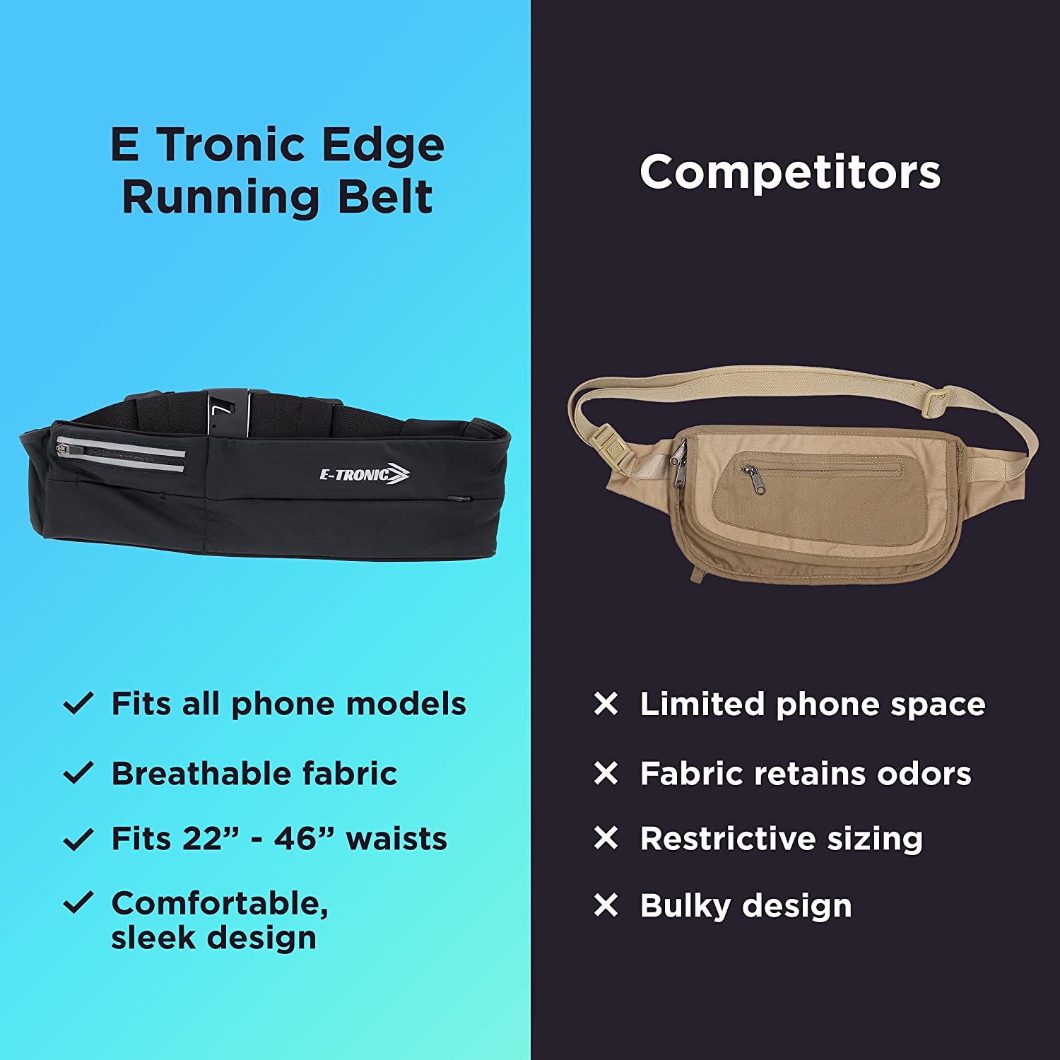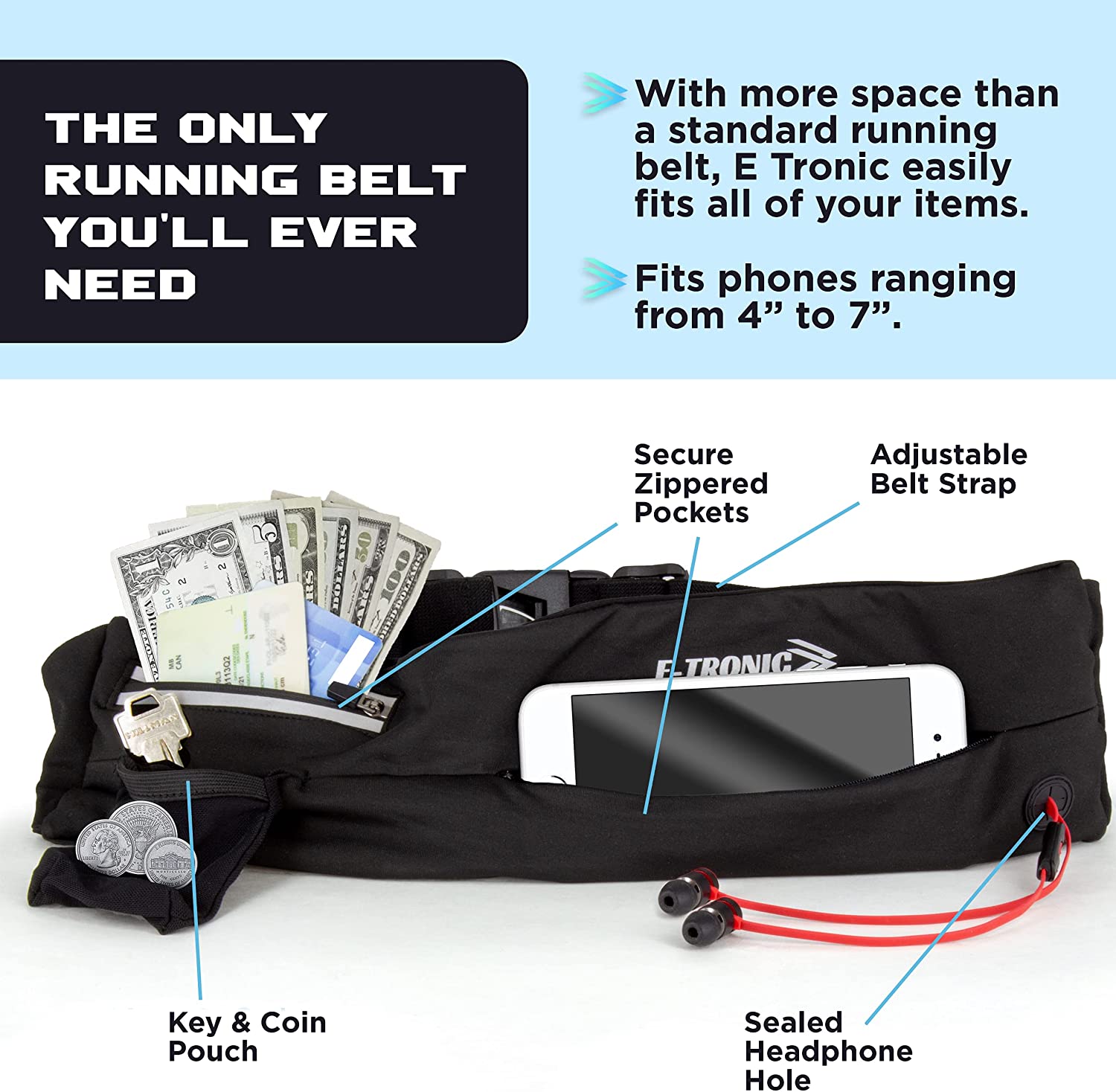 E Tronic Edge Running Belt for Women and Men, Money Belt and Running Fanny Pack, Holder for Cell Phone, Money, and Keys - Pouch fits Most Phone and Waist Sizes