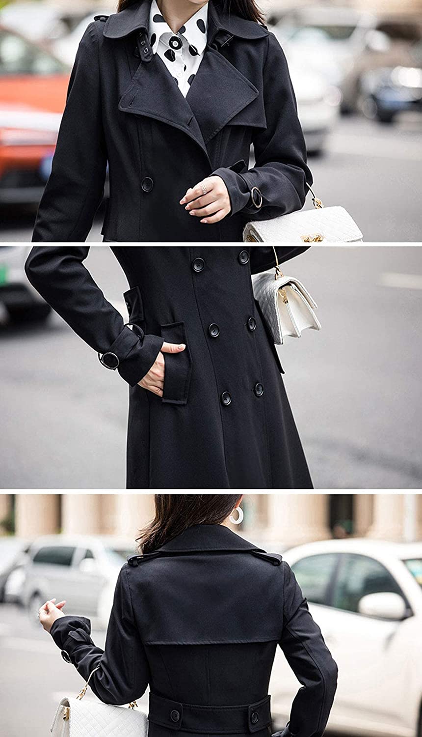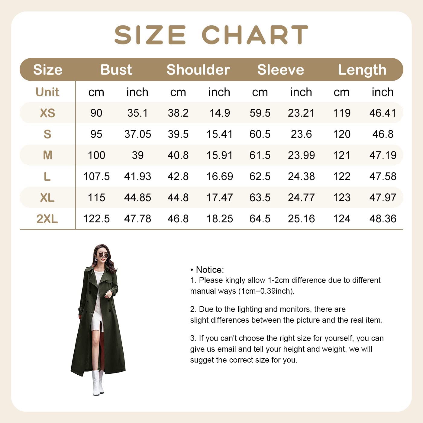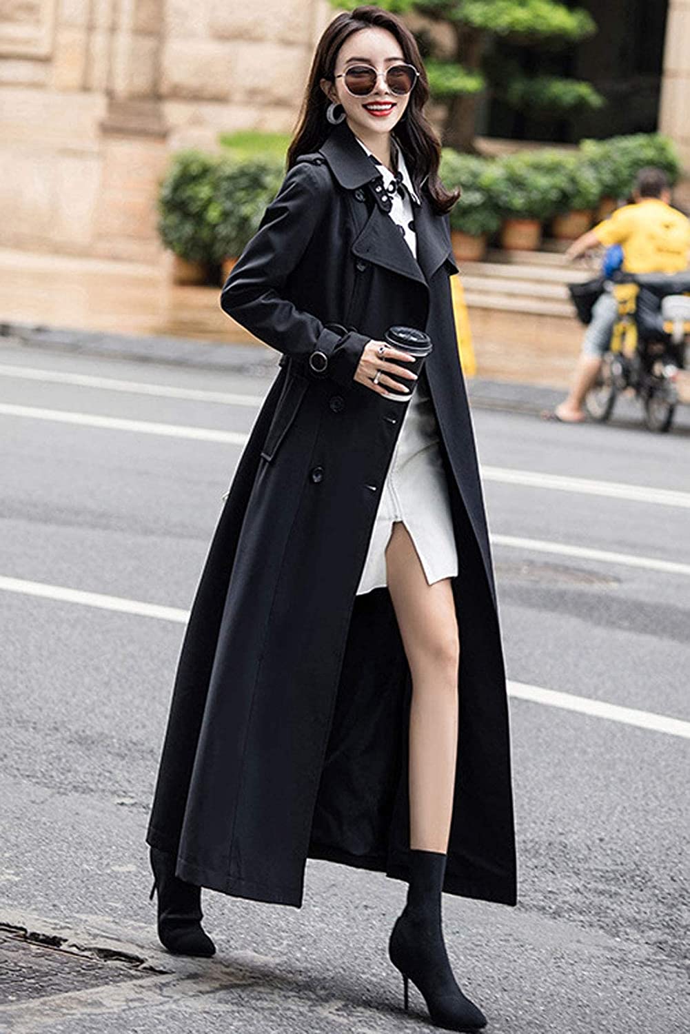 ebossy Women's Double Breasted Duster Trench Coat Slim Full Length Maxi Long Overcoat