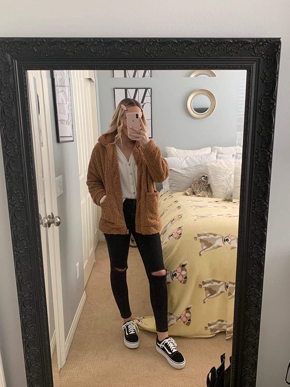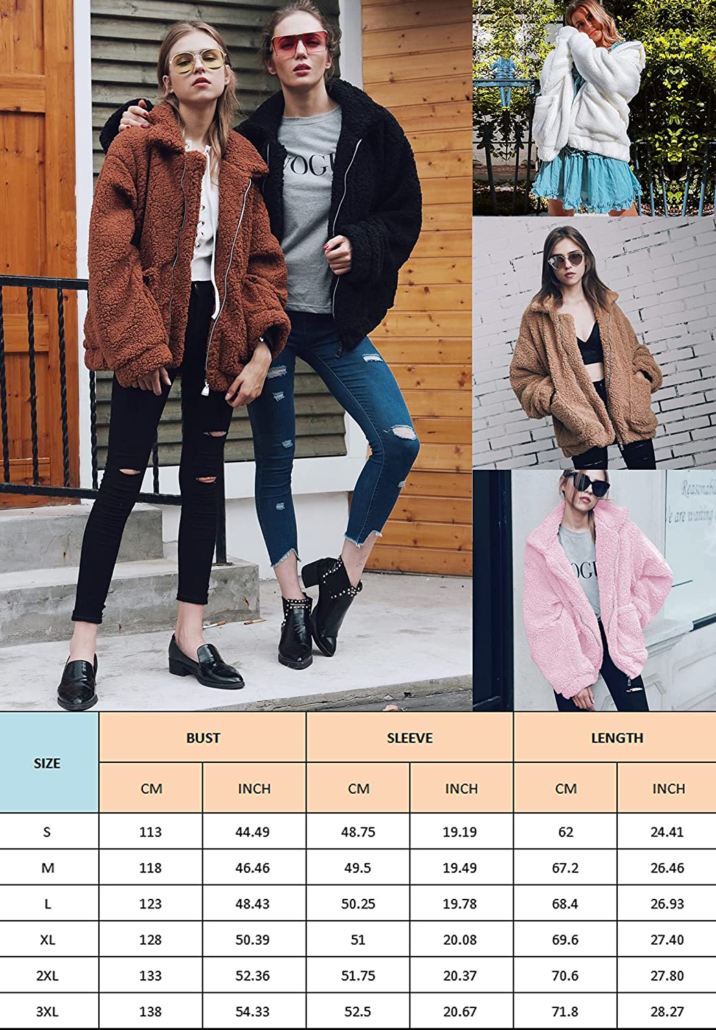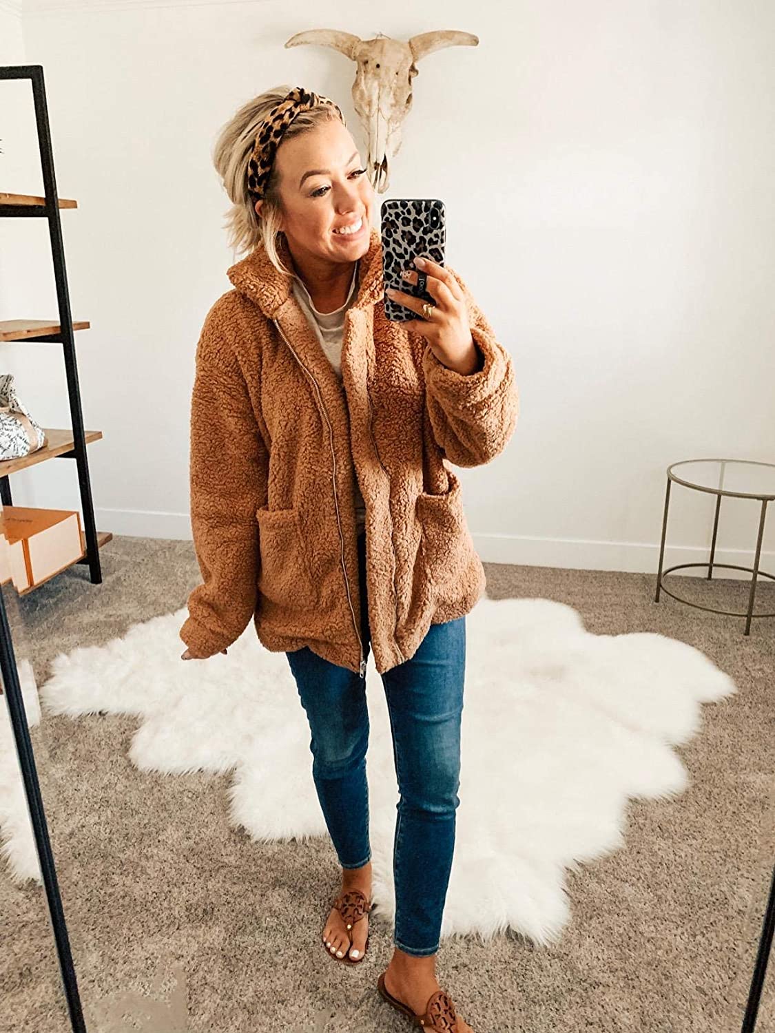 ECOWISH Women's Sherpa Jacket Casual Lapel Fleece Fuzzy Faux Shearling Zipper Teddy Coat Oversized Outwear
