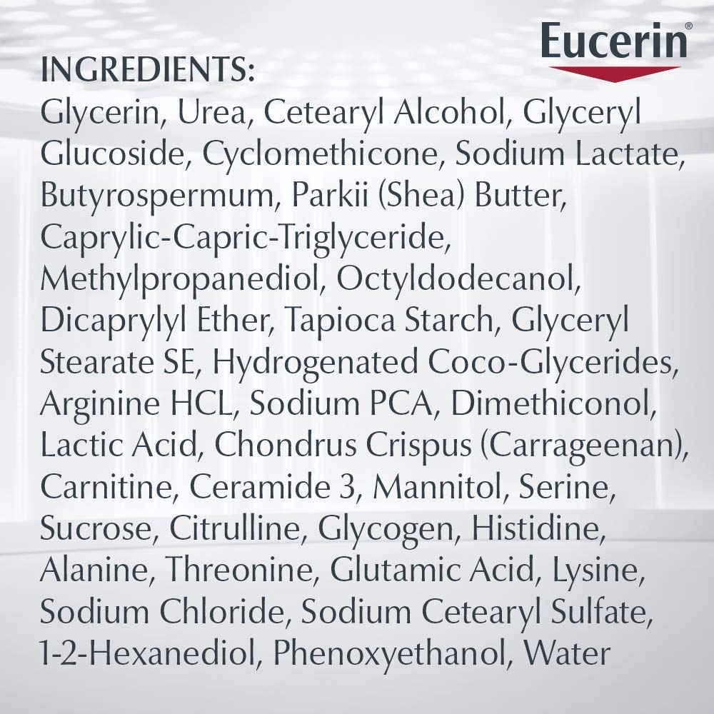Fight dryness at its source with Eucerin Advanced Repair Body Lotion. This Eucerin lotion for dry skin provides 48 hour moisture for skin that looks and feels healthy. Eucerin Advanced Repair Body Lotion for dry skin is formulated with ceramides to help strengthen the skin’s moisture barrier to lock in moisture. It is also formulated with Natural Moisturizing Factors, amino acids that are naturally found in the skin, to boost moisture and help prevent dryness. This Eucerin sensitive skin lotion formula is lightweight and fast-absorbing, and smoothes, repairs and hydrates dry skin. This Eucerin body lotion for sensitive dry skin is fragrance free, dye free, paraben free. This body moisturizer can also be used as a hand lotion or foot lotion. To use, smooth this Eucerin dry skin lotion onto your skin daily. For best results, apply after showering. Eucerin is a dermatologist-recommended skincare brand that is based on an uncompromising approach to science. With skin care products designed to restore and sustain healthy-looking skin, families everywhere look to Eucerin to enhance outer beauty and self-confidence.