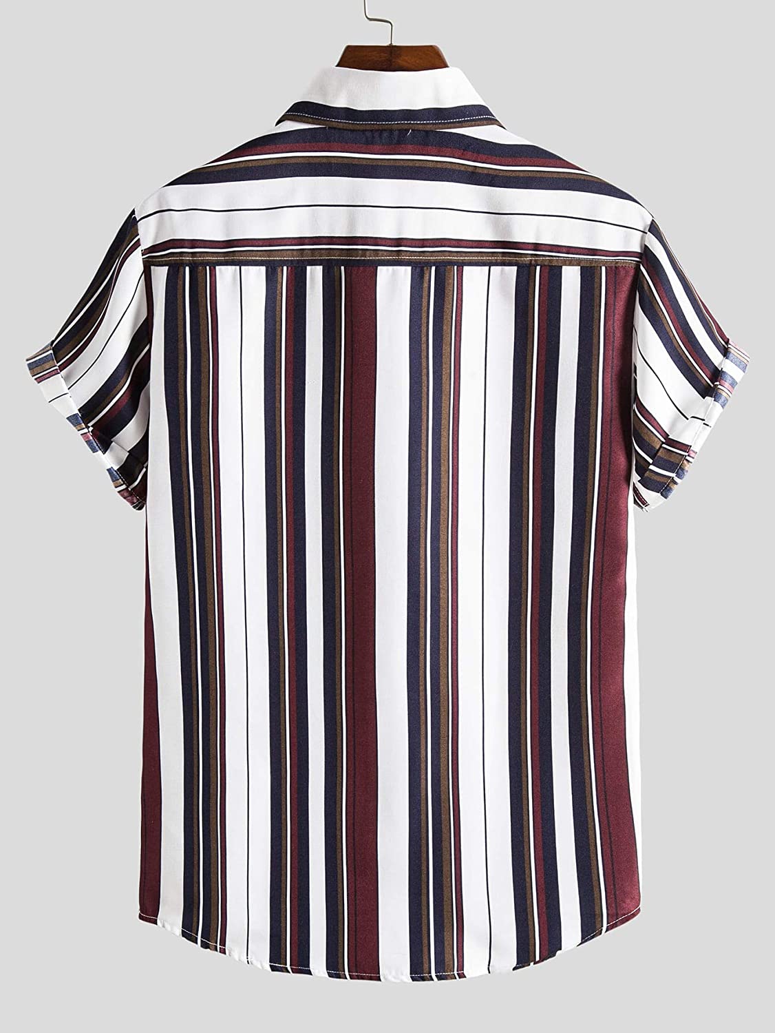 Floerns Men's Striped Shirts Casual Short Sleeve Button Down Shirts